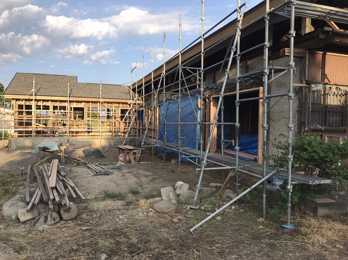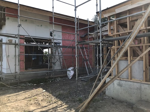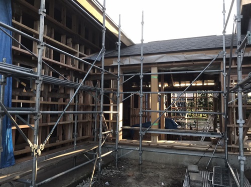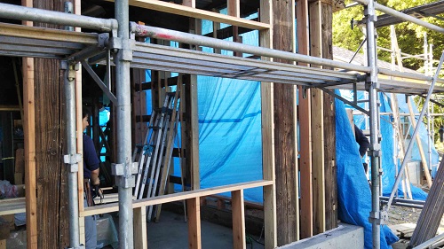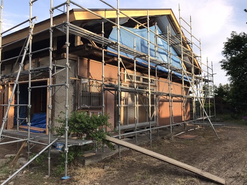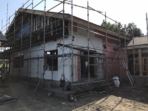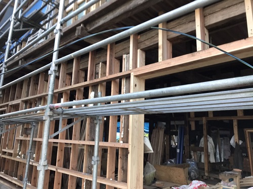 構造補強と外壁下地が進む大改修現場の進捗です。