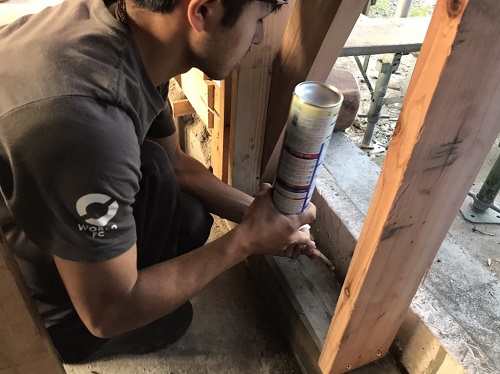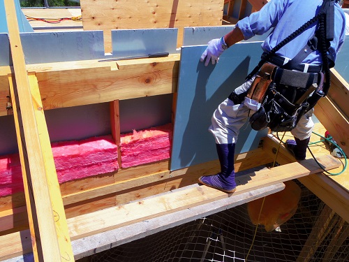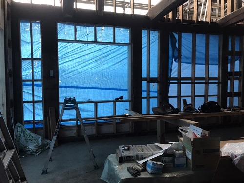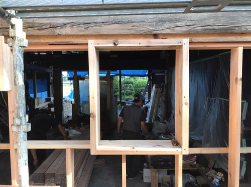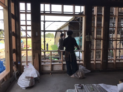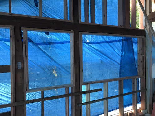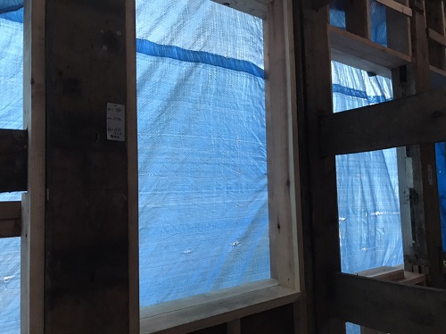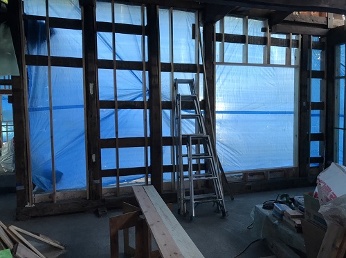 外壁の下地工事が進む大改修現場です。窓の取付下地も同時に進みます。
