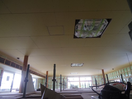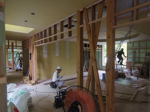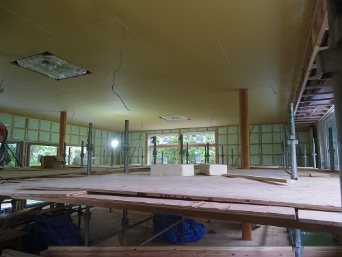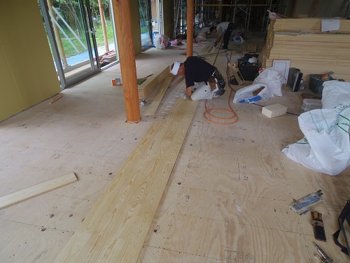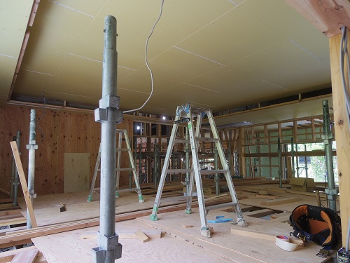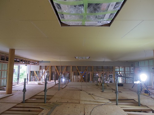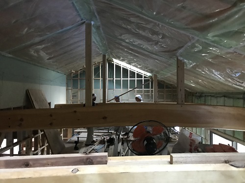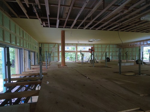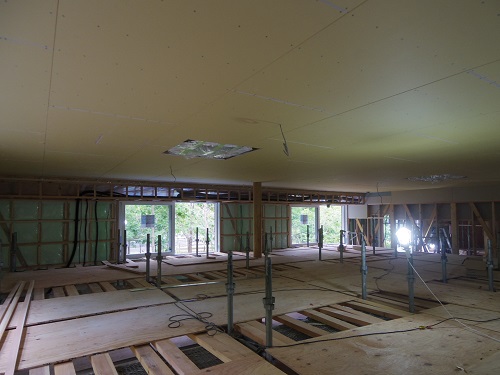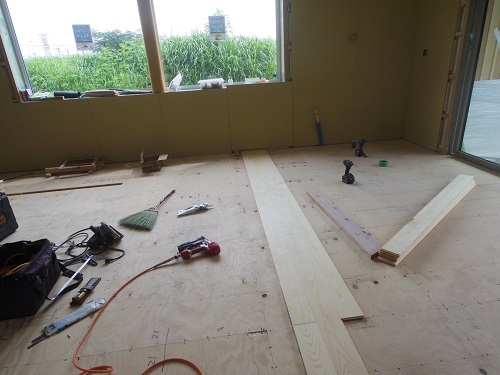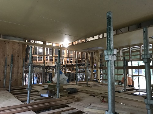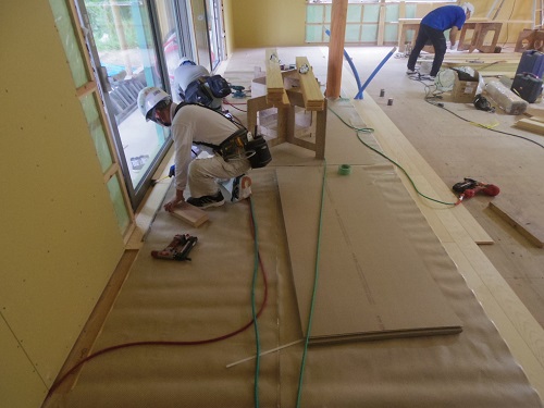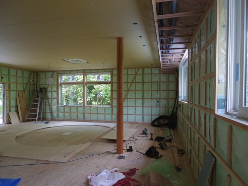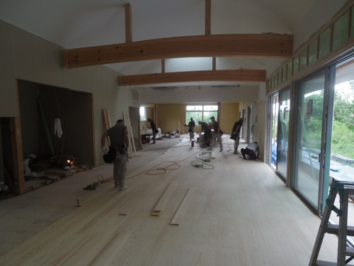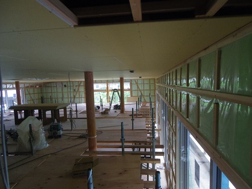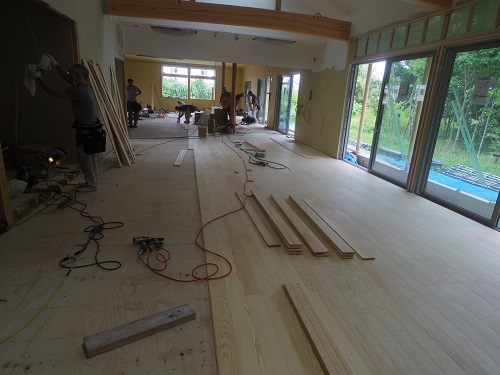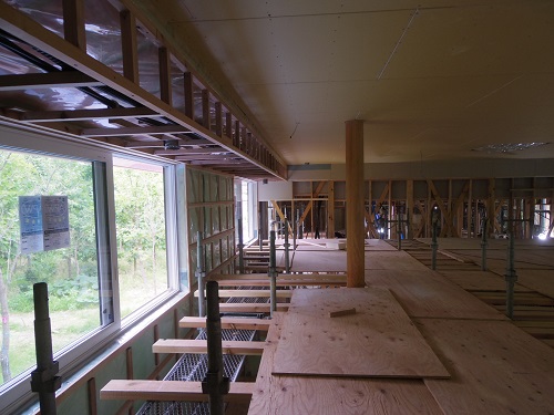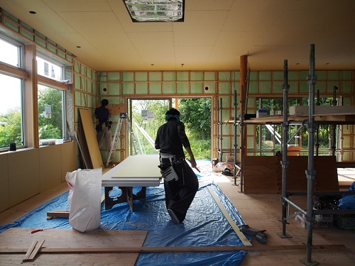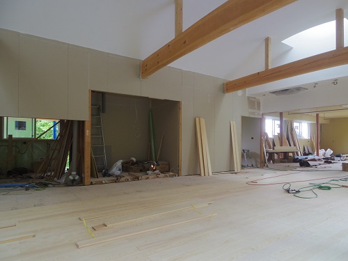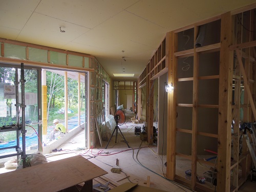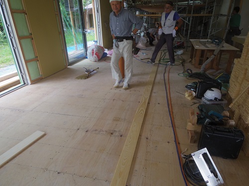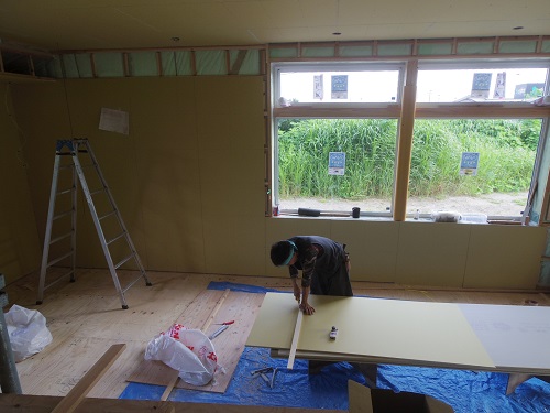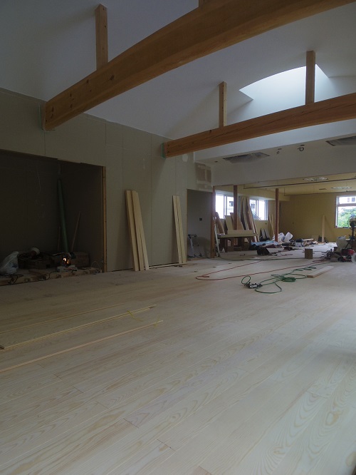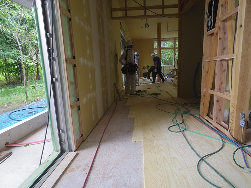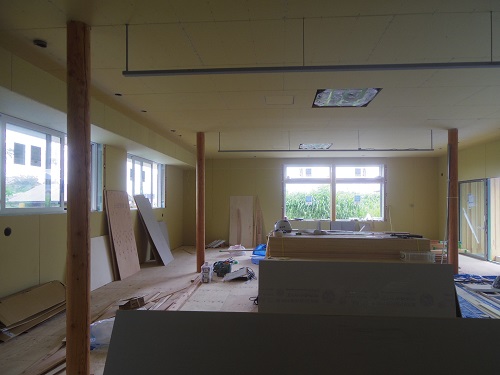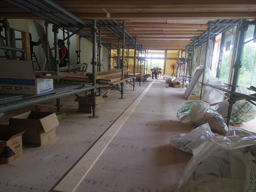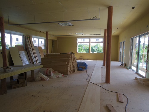 お盆休み連休明けの昨日の保育園新築現場は、床張込みと、内装工事が進みました。