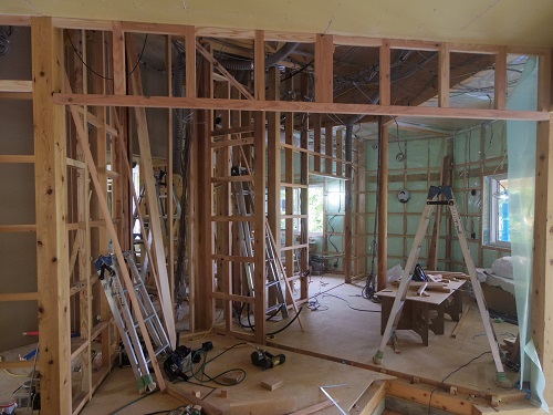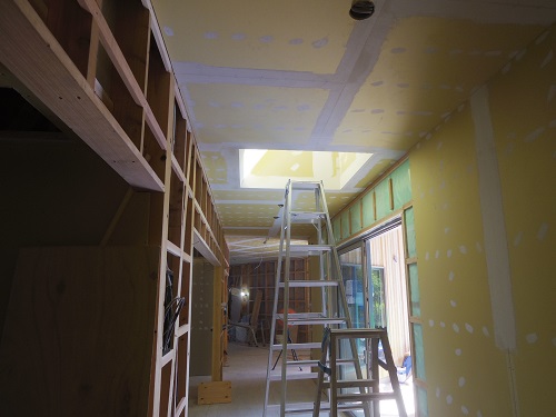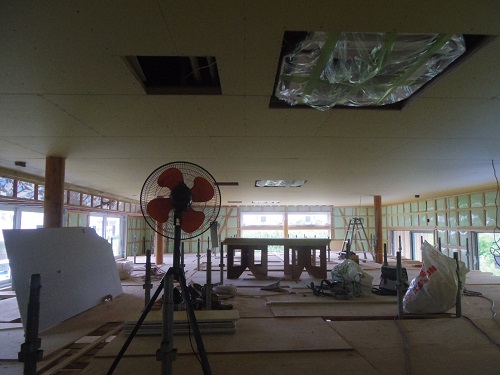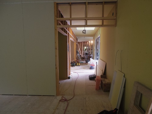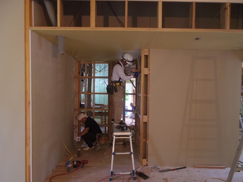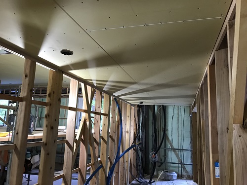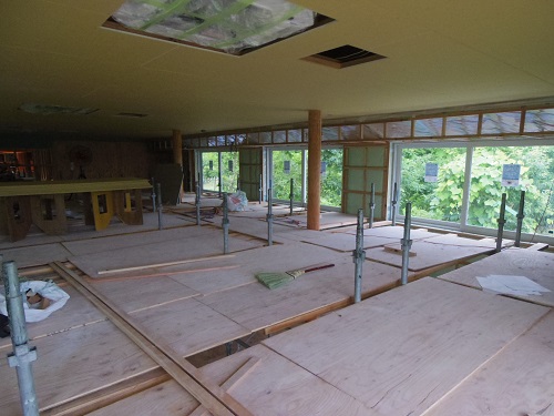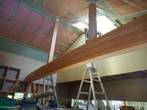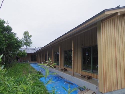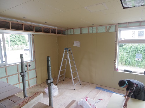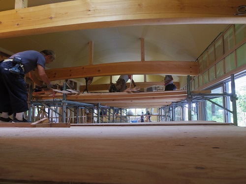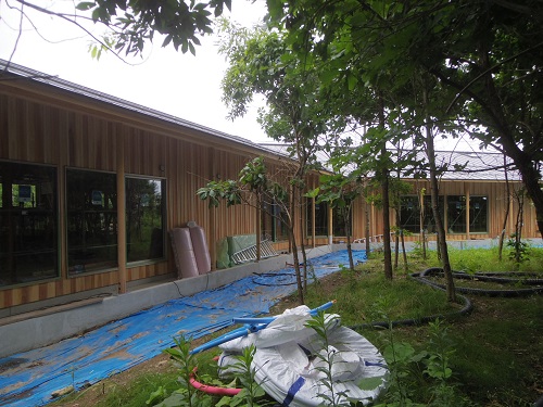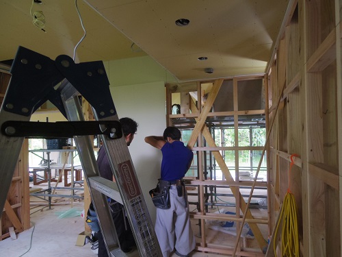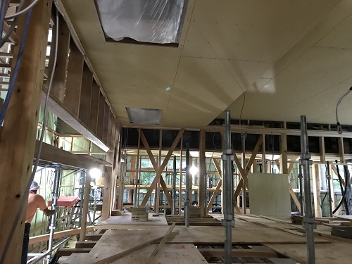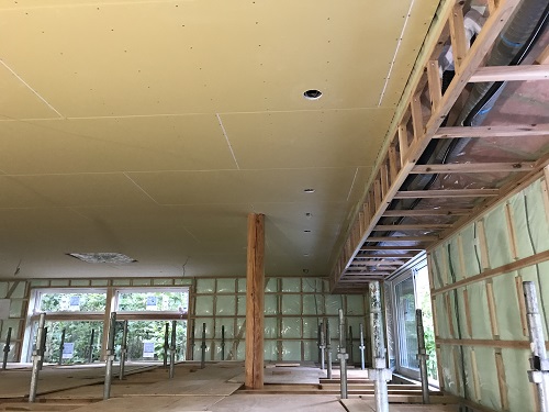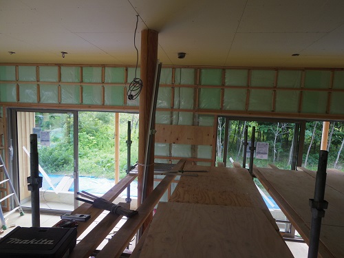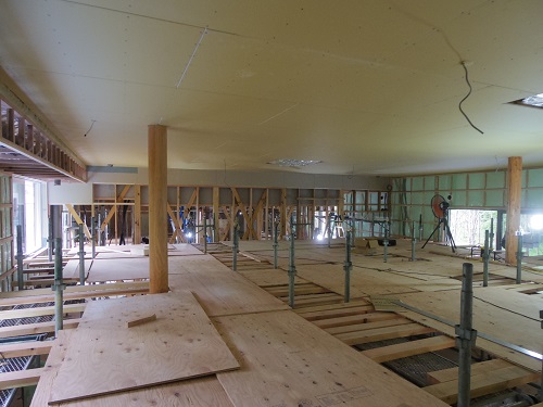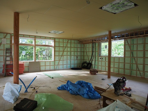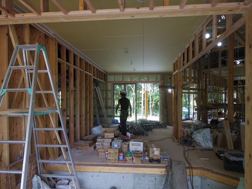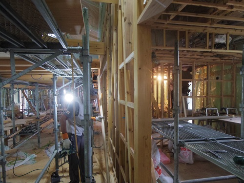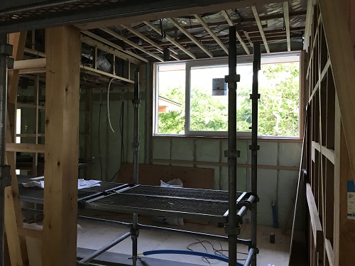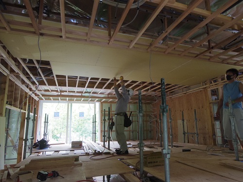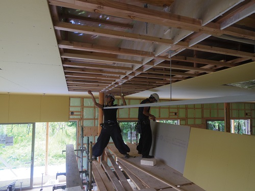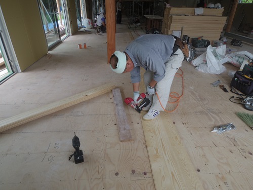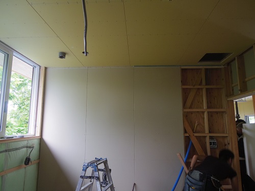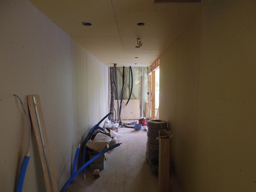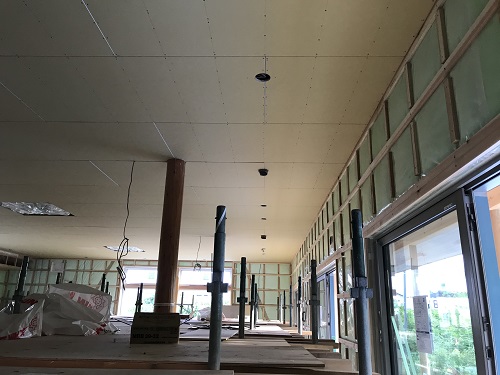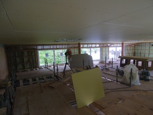 お盆休み連休明けの昨日の保育園新築現場は、床張込みと、内装工事が進みました。