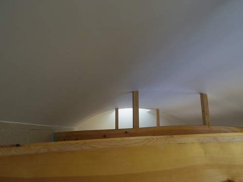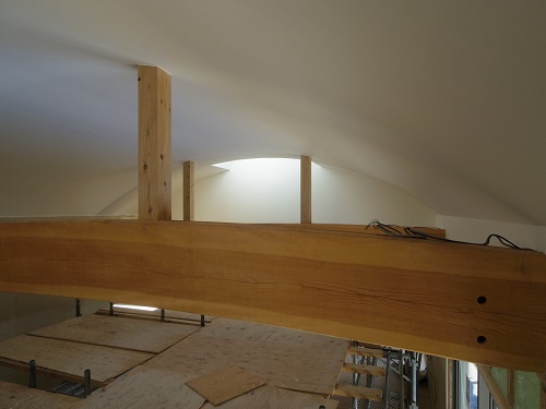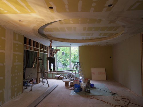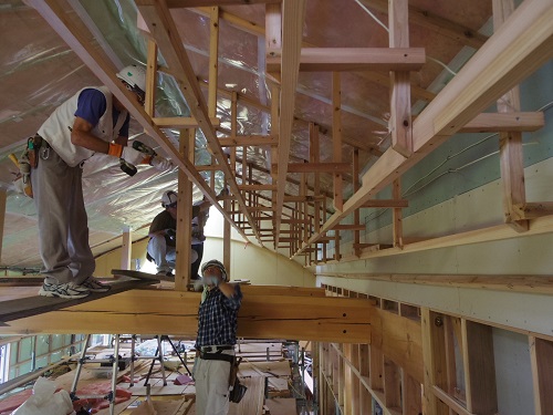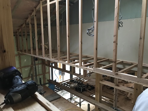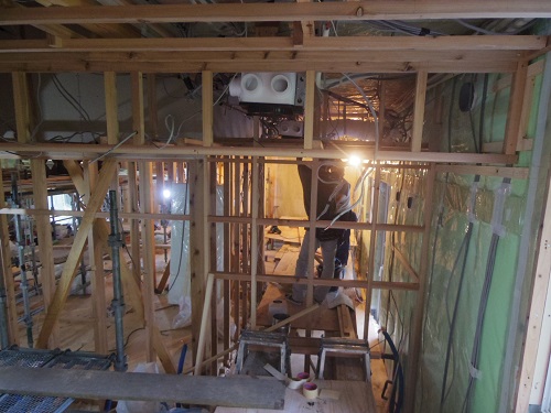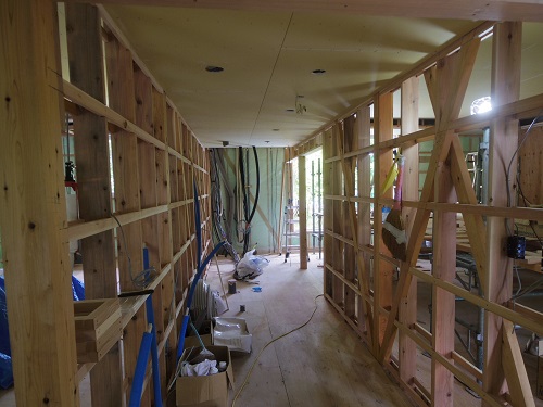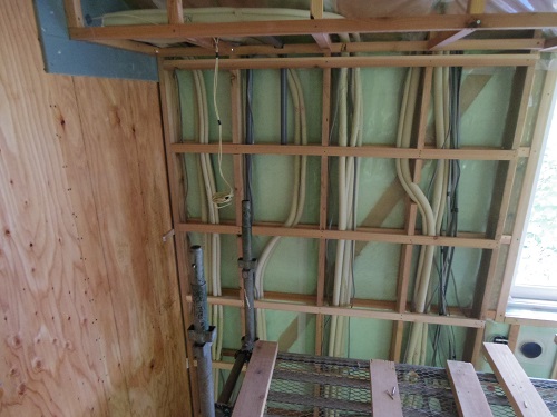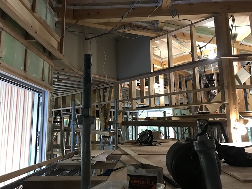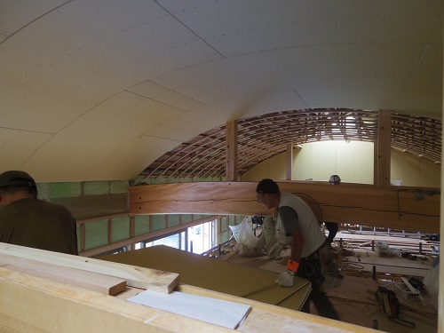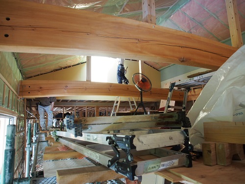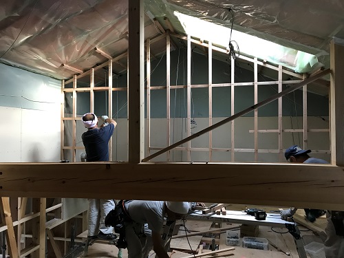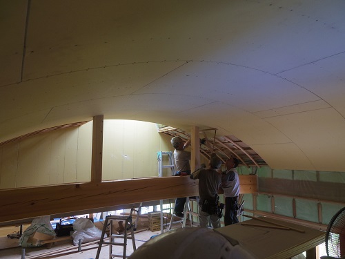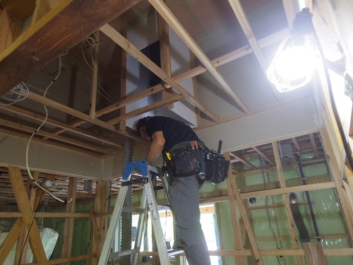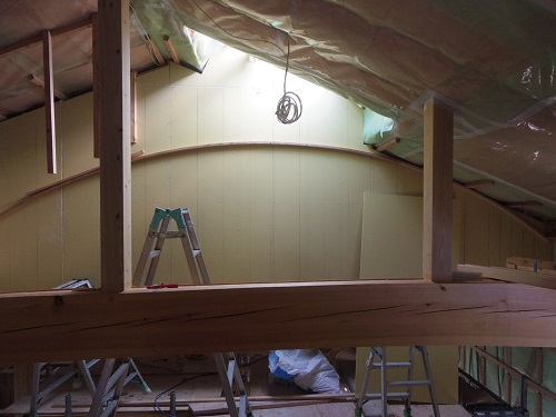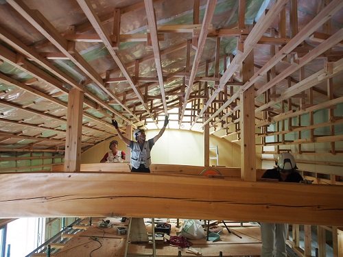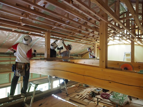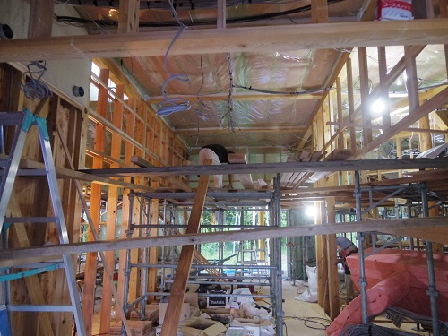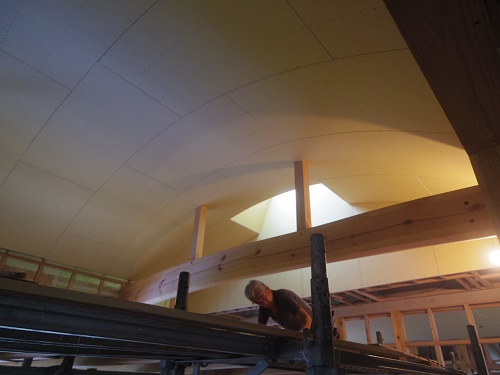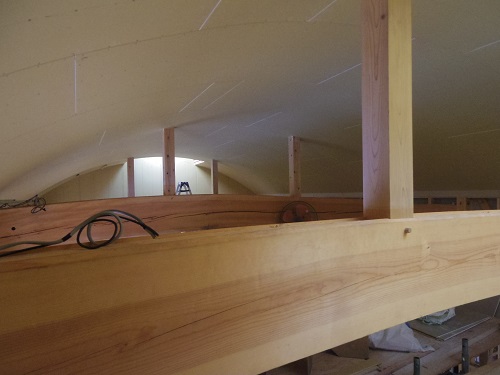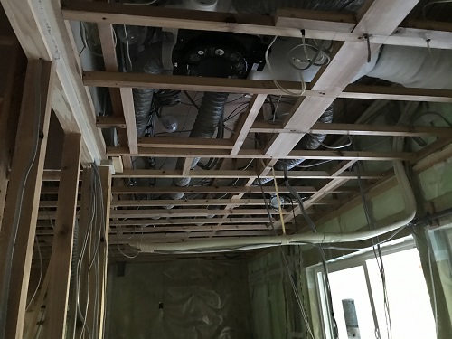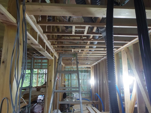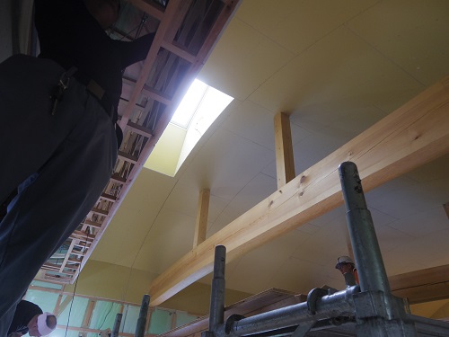 天井の下地工事が芸術的で、仕上がるとこれが見えなくなるのがもったいない感じです。