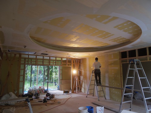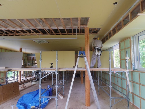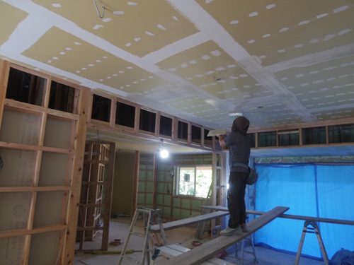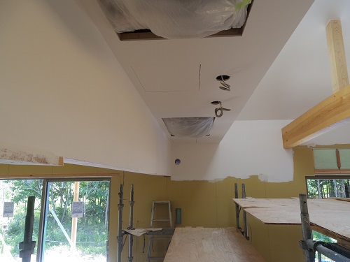 当社連休中でも、現場の塗装工事は進みました。足場があるうちに天井は塗りたいものですよね
