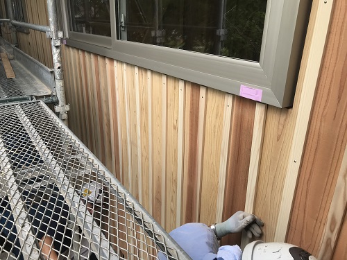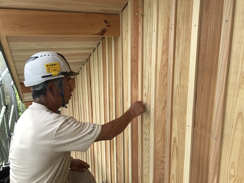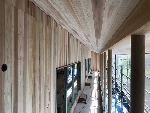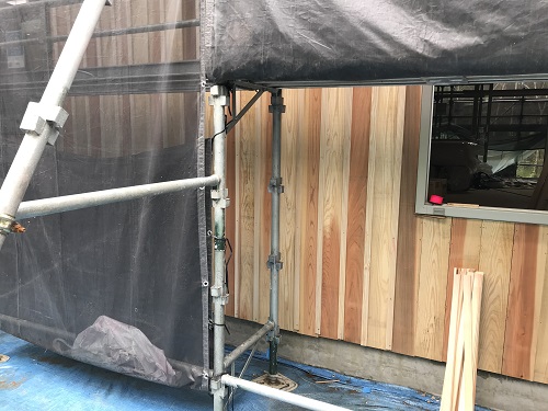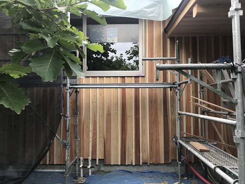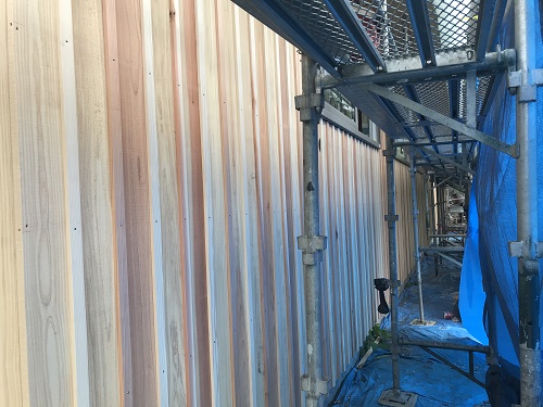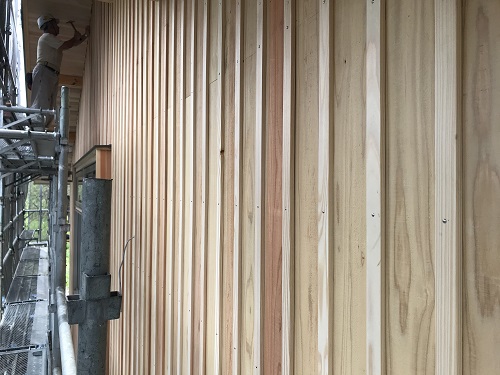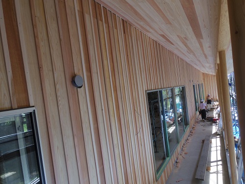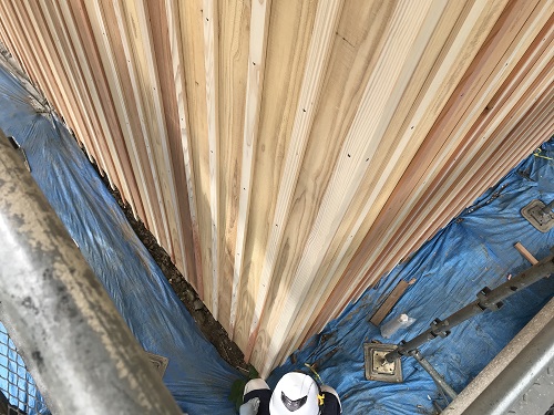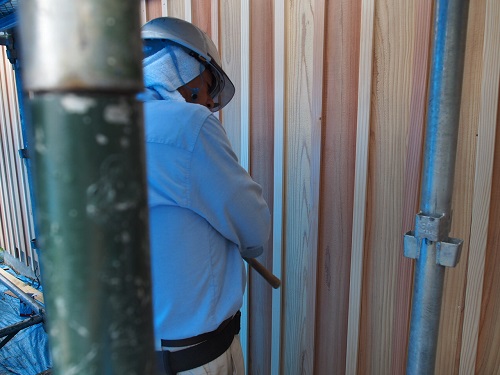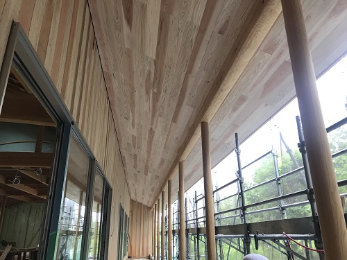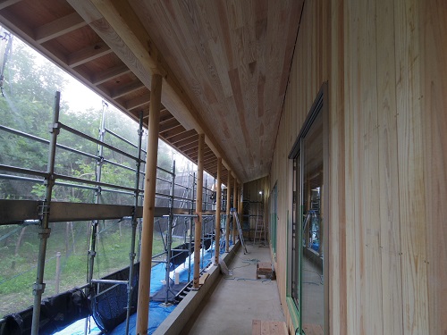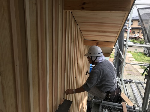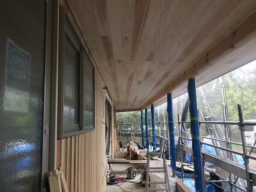 外壁と軒天工事が進んでいます。それと同時に内部工事も進んでいます。