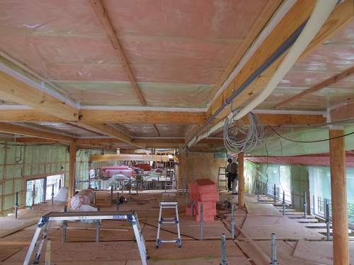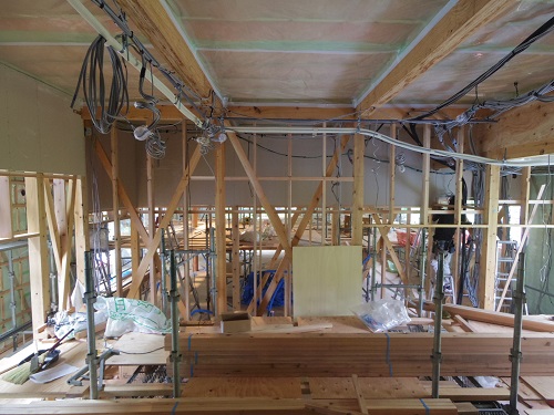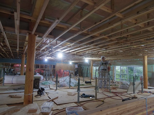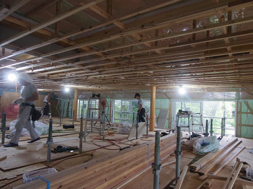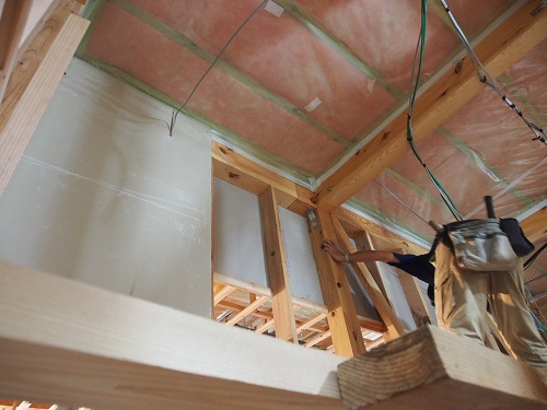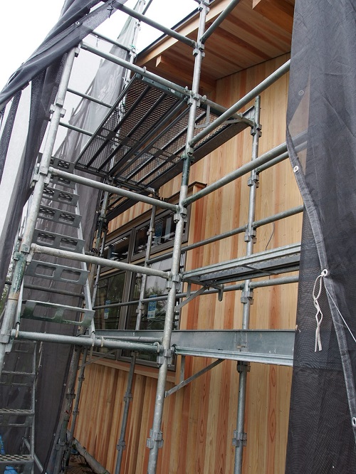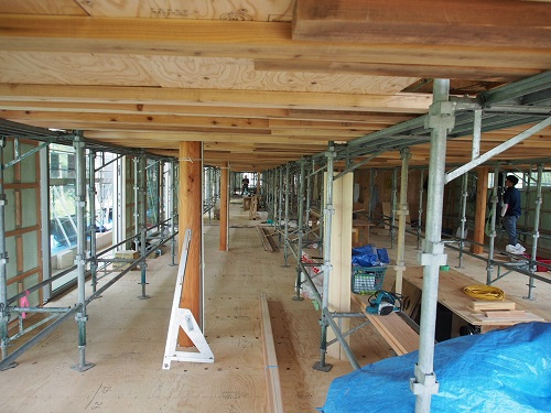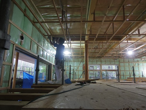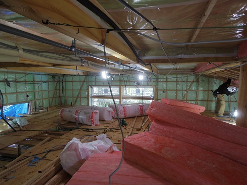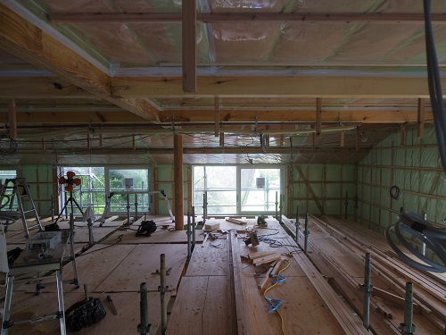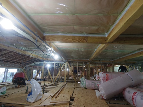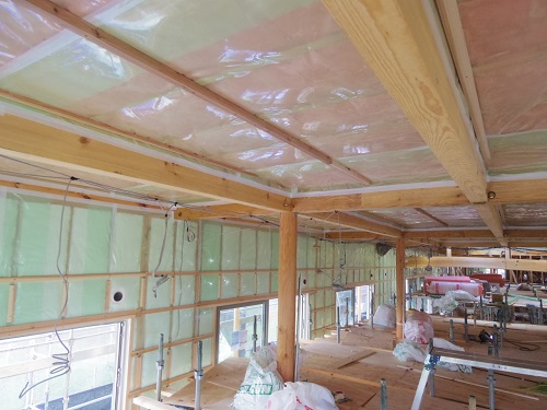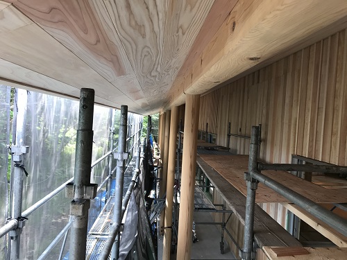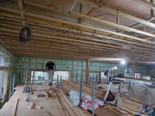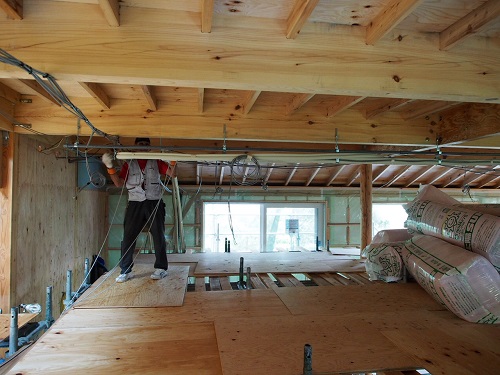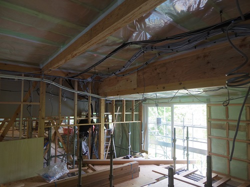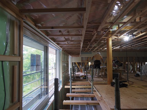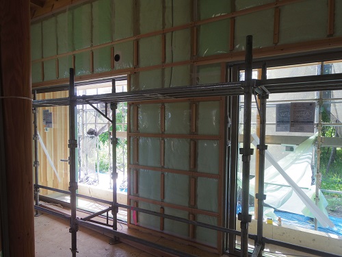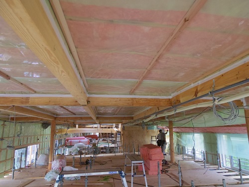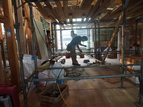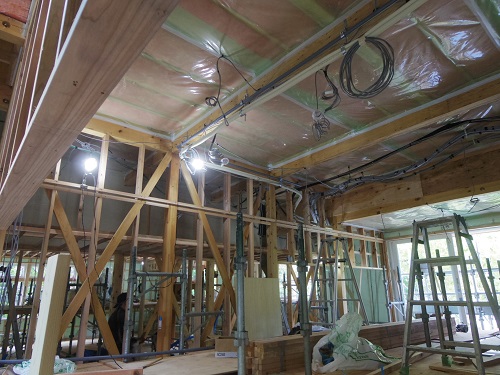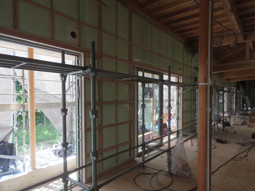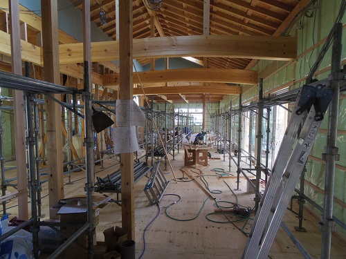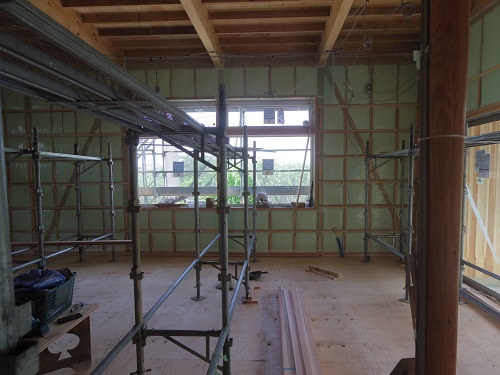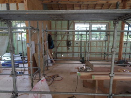 内部足場が組まれて、屋根断熱入れ込みが始まっていました。