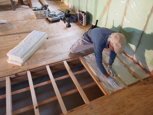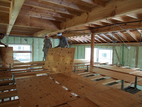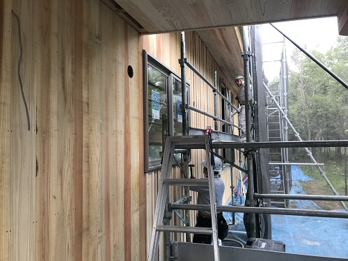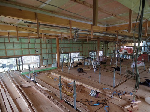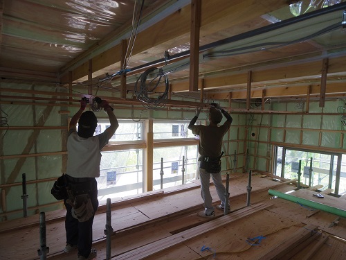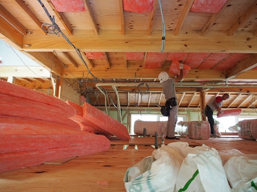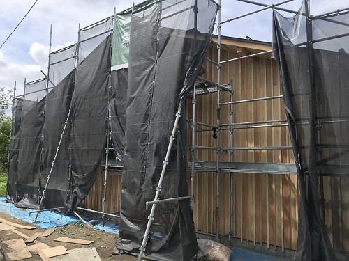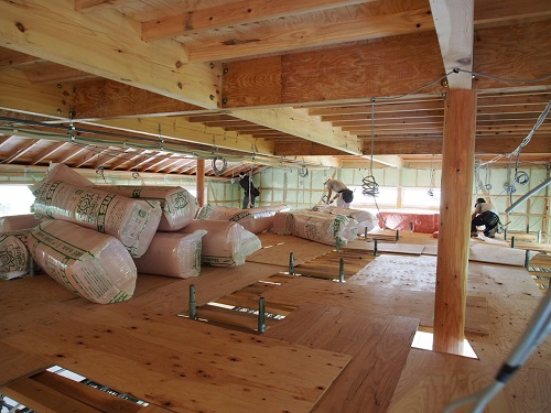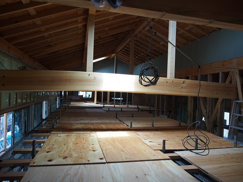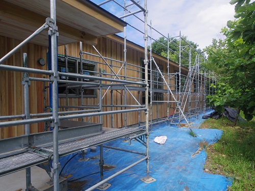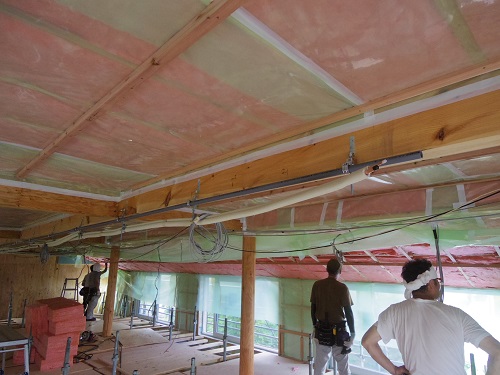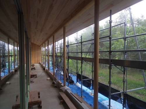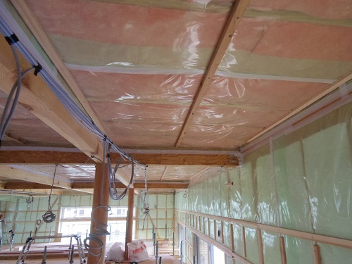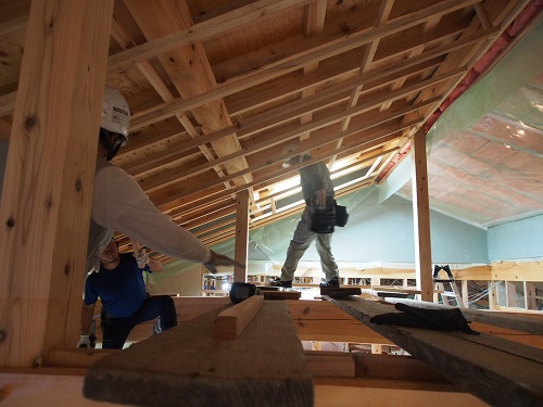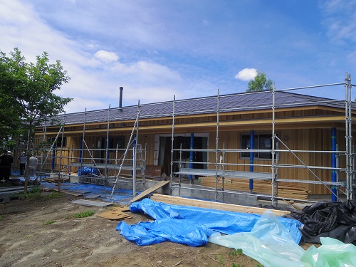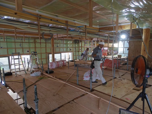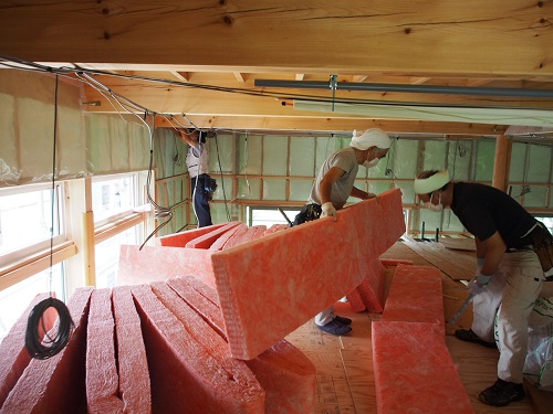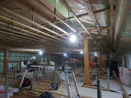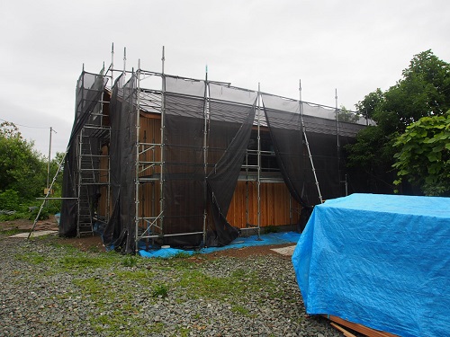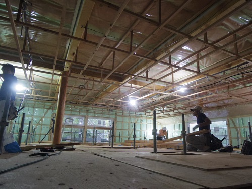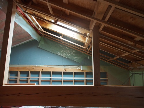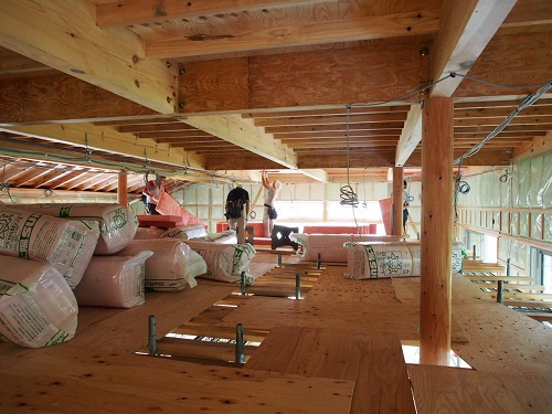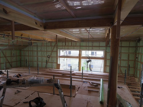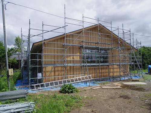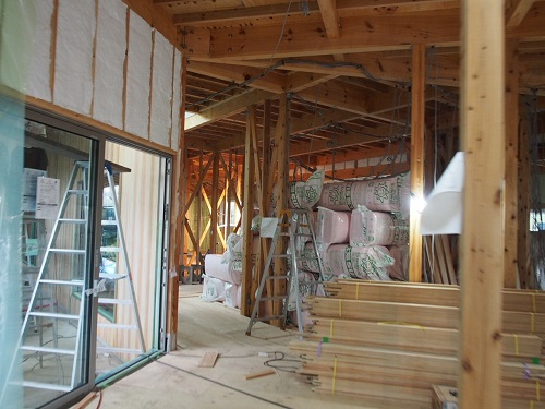 内部足場が組まれて、屋根断熱入れ込みが始まっていました。