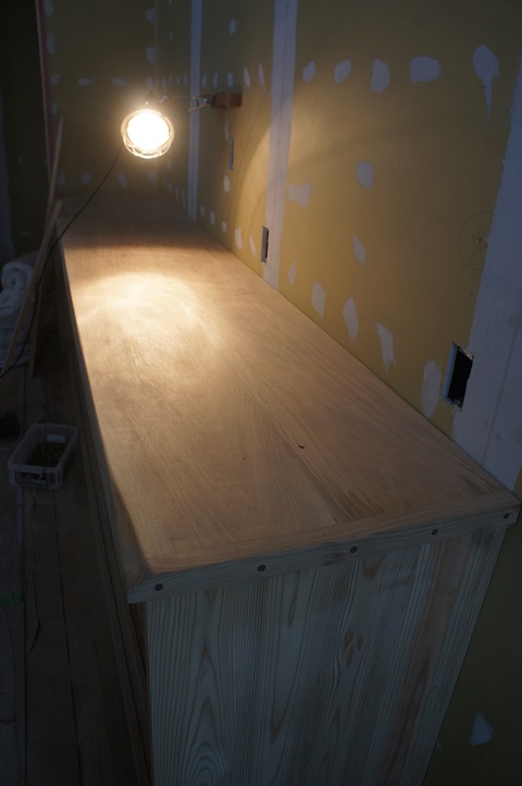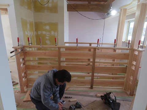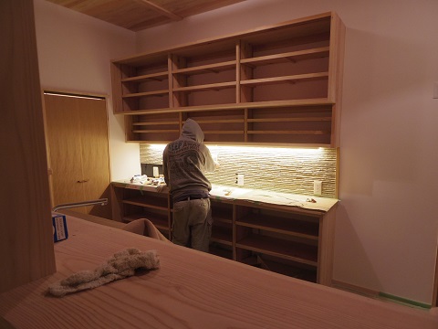 造り付けの台所収納カウンター周りもいい感じに仕上がってきましたね。改修前は個室的な台所したが、すっかり大変身できてきました。明日のご見学のお申し込みもいただきはじめております。私は、陸前高田方面に行く予定がありますので、不在ですが、設計の栗城がご案内させていただきますので、何卒よろしくお願い申し上げます。
