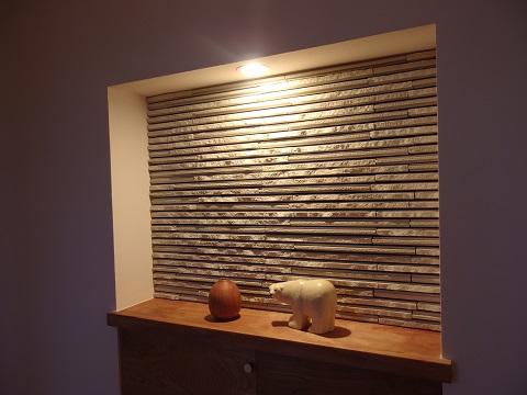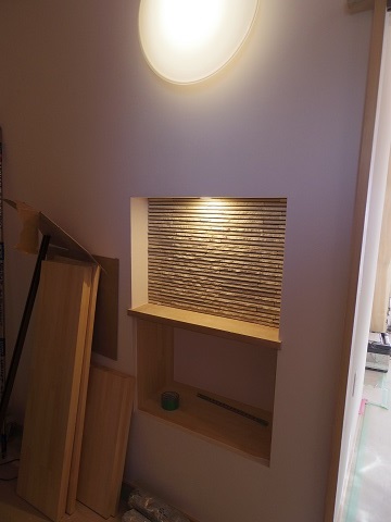 当社での住まい造りの楽しさは、こうした写真のニッチ部など住まい造りが進む現場を見ながら、閃きや思いつきのままにご相談いただいて、それを形に出来る事です。まさしくご自身で家造りをしている心地良さがあります。