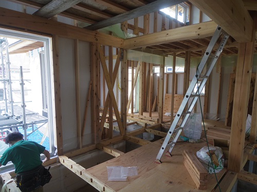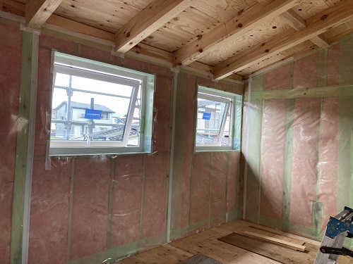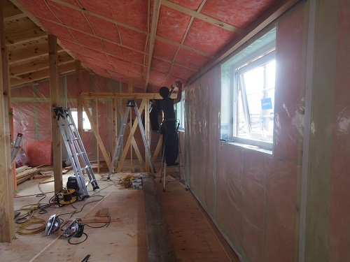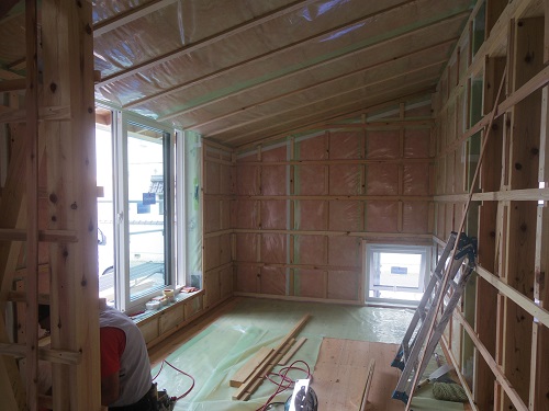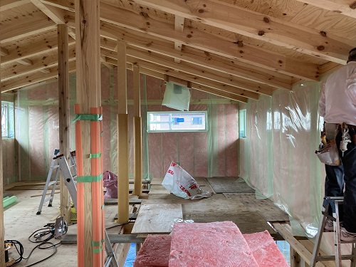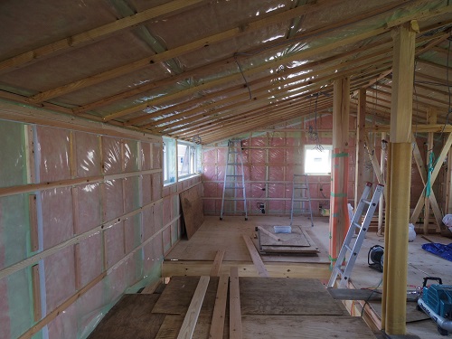 中間検査を受けました。内部断熱も進んでいます。