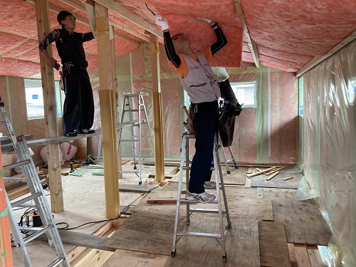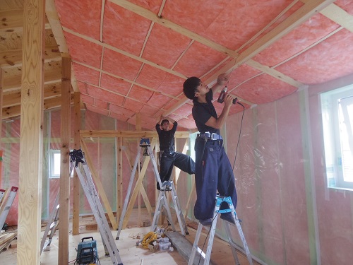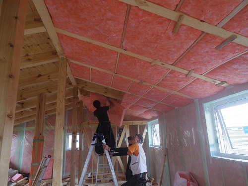 断熱工事は屋根部の方も進めています。