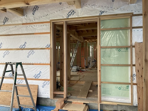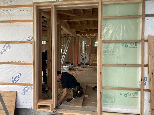 屋根断熱と防湿工事並びに玄関枠取付が進みました。