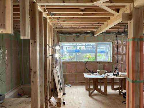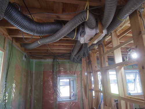 電気配線と換気悲観工事も進みました。