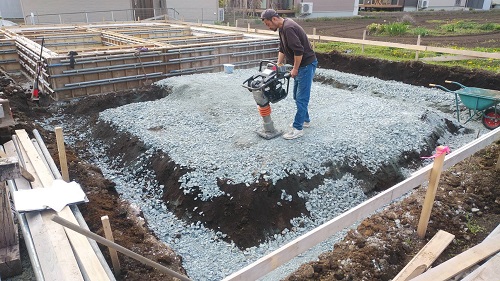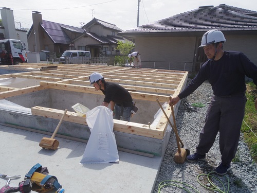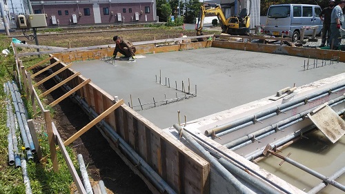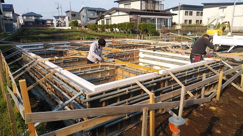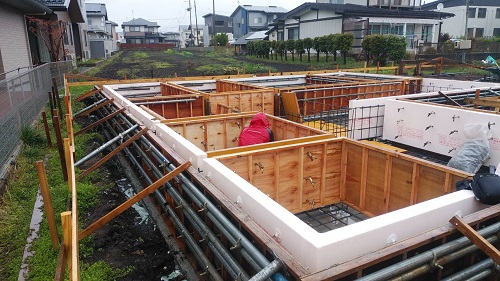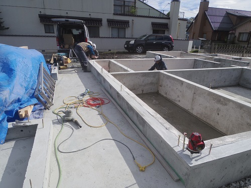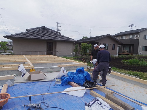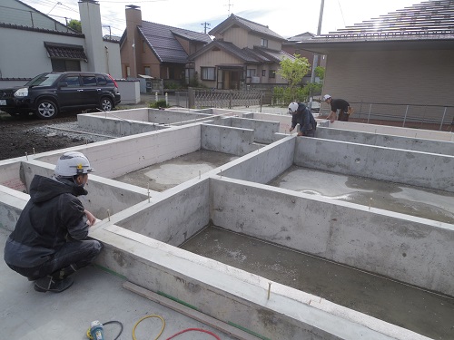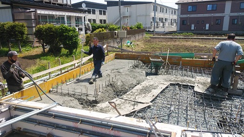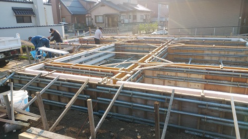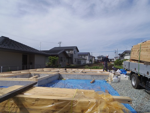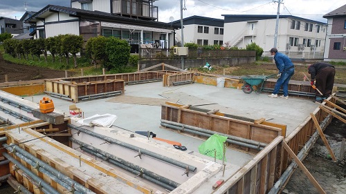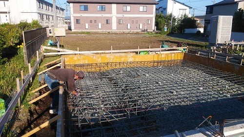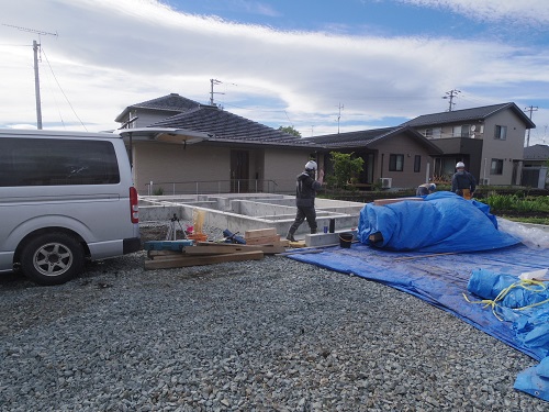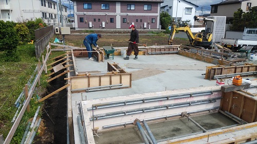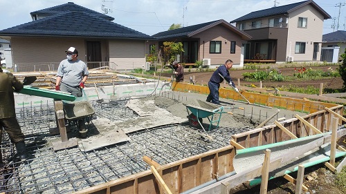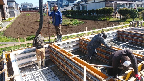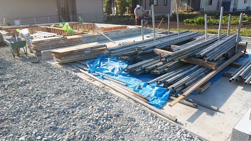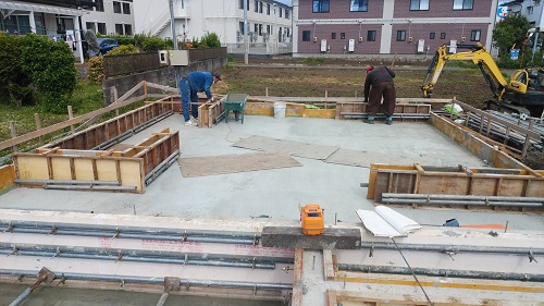 連休前の平日は雨でコンクリート打設できなかったので、連休明けの車庫コンクリート打設に向けて頑張っています。