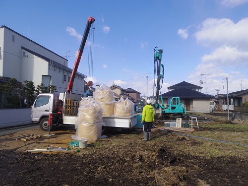 地盤改良工事が進みました。