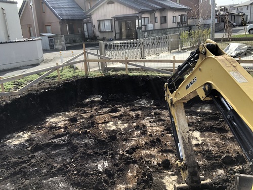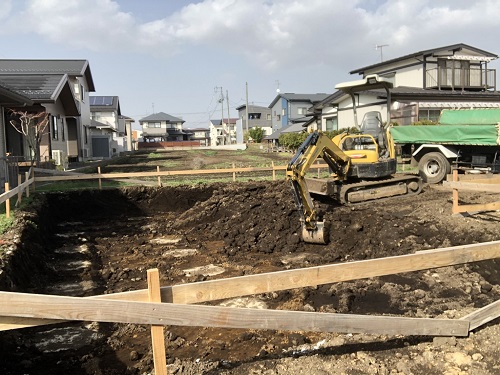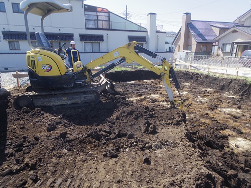 基礎工事は根伐りが始まりました。