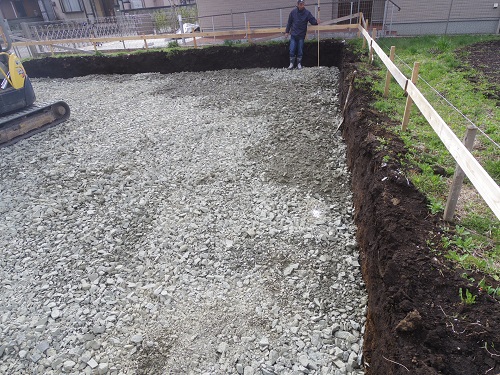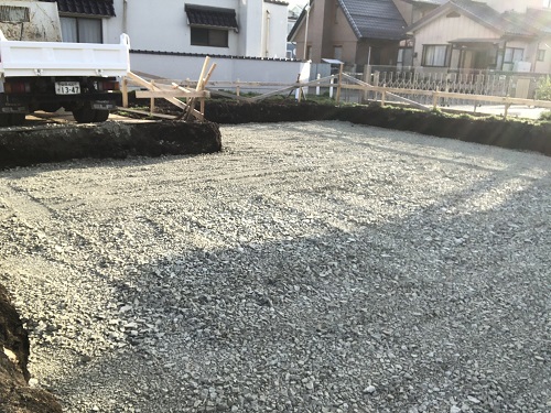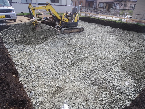 基礎工事は砕石地業が進みました。