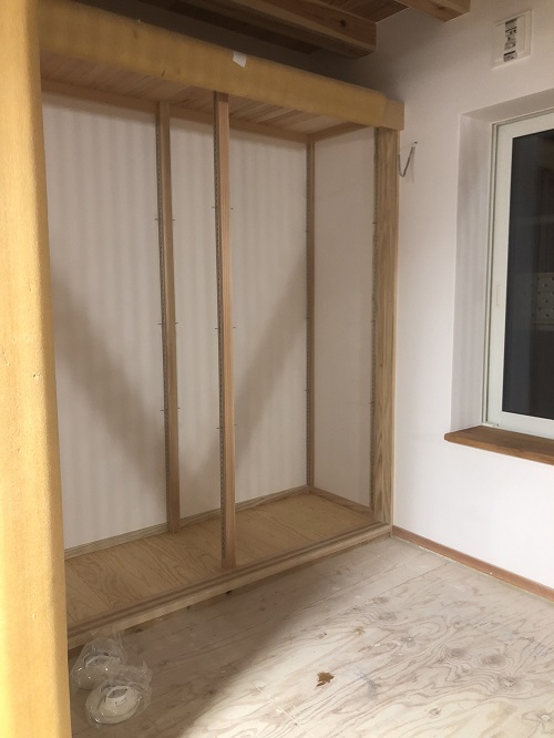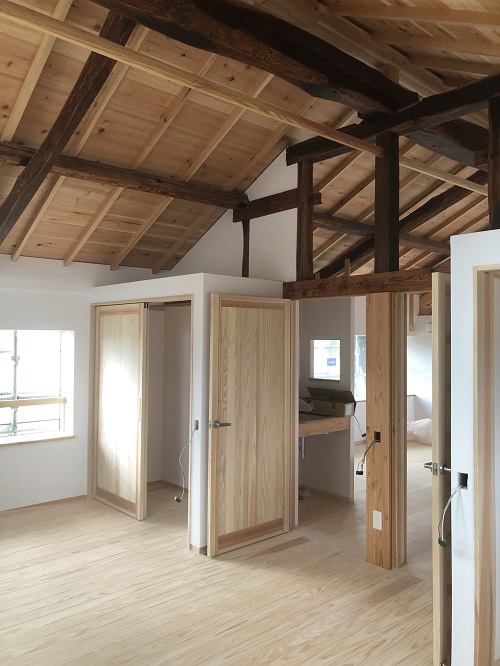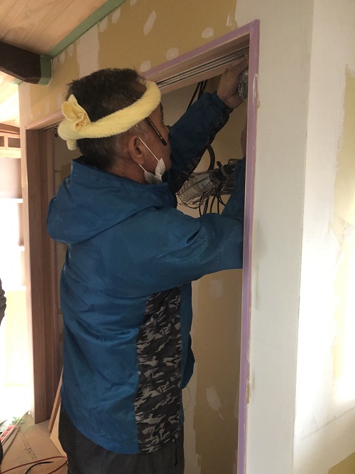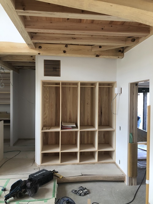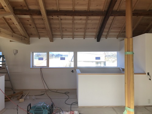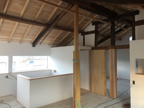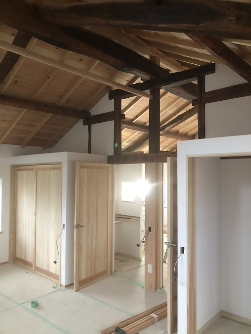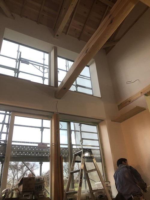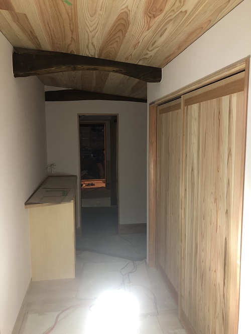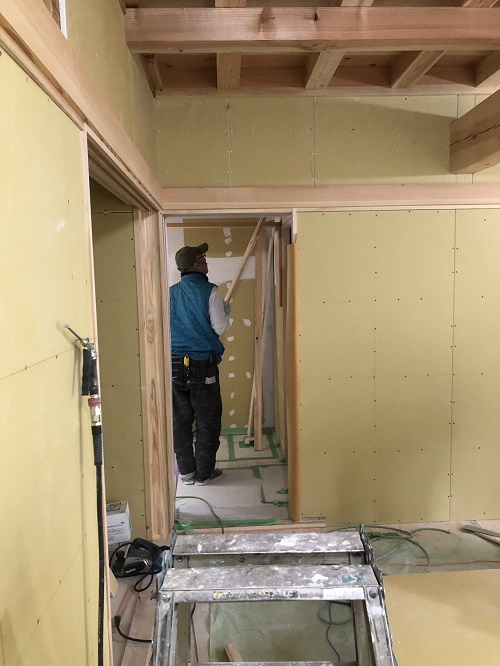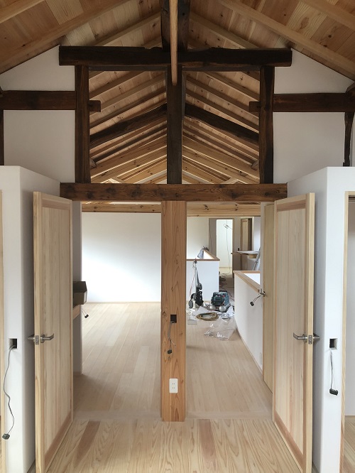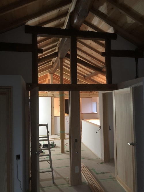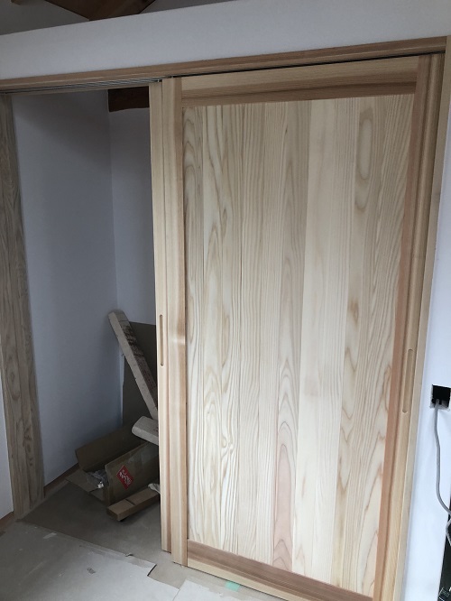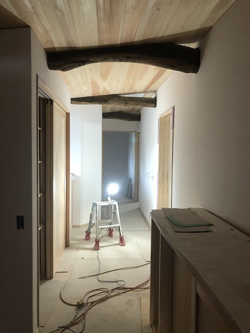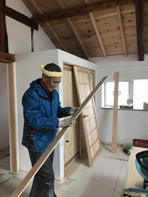 建具の吊り込みも進みました。内装と大工造作も同時進行です。