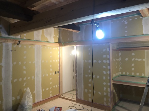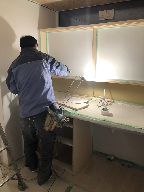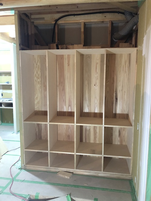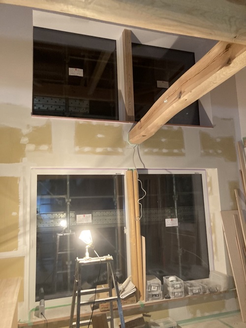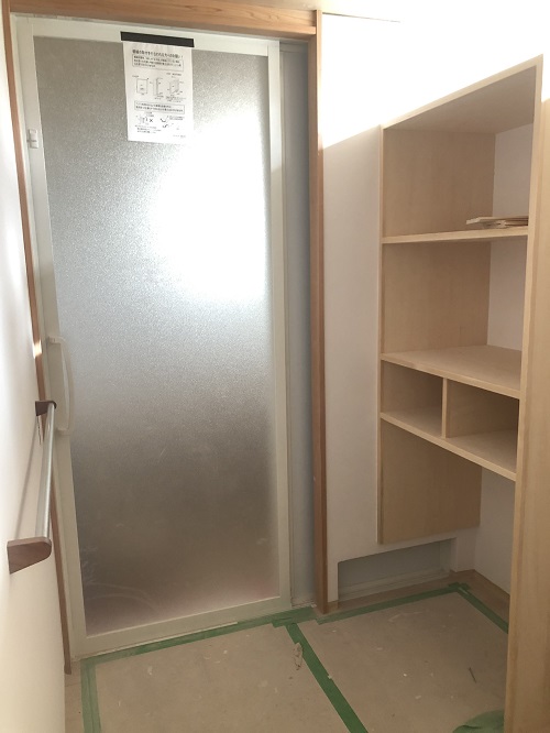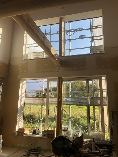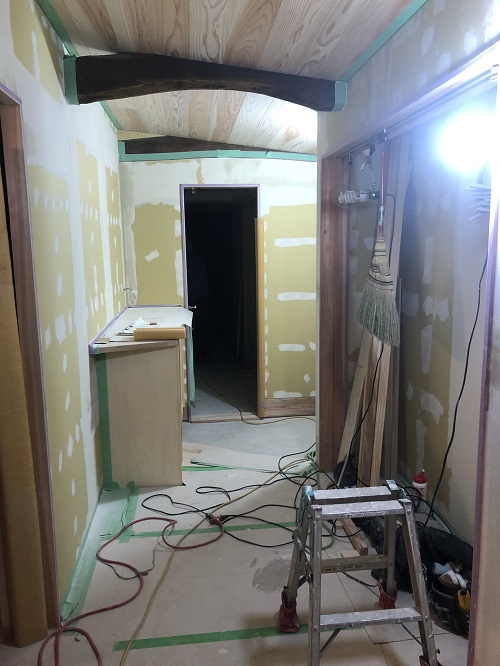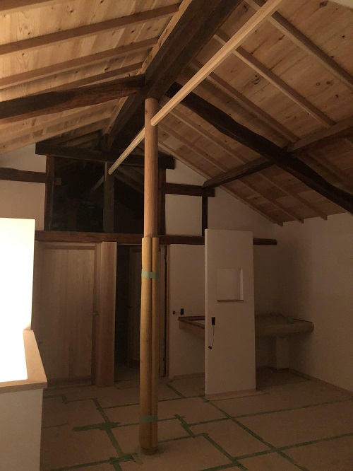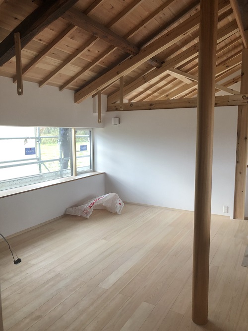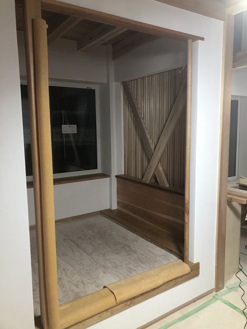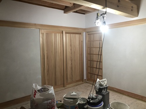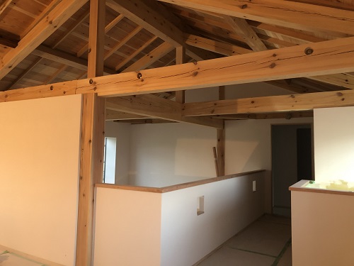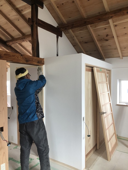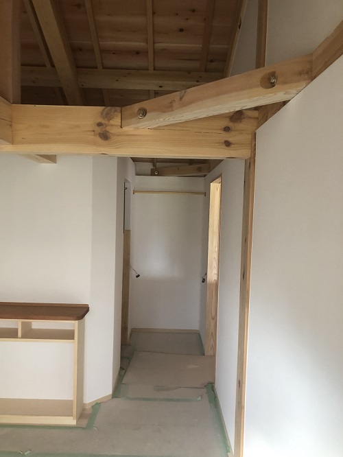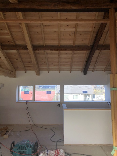 建具の吊り込みも進みました。内装と大工造作も同時進行です。