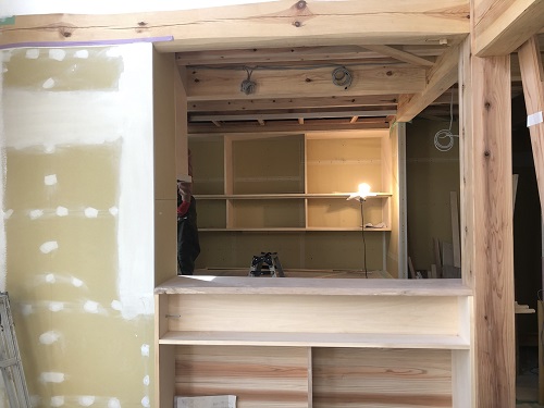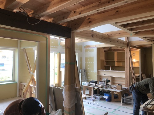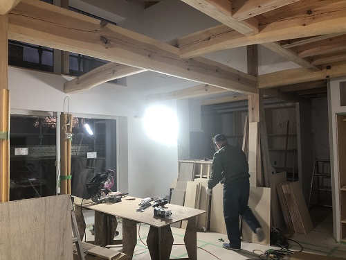 1階の内装も始まりましたが、大工造作も同時進行です。