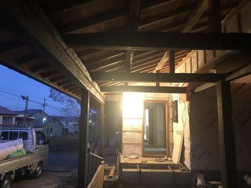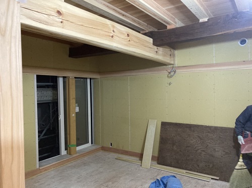 内部は進むも、外部が外壁屋さんに依頼しても忙しくて来てもらえないままに本日から大工応援が入りました。