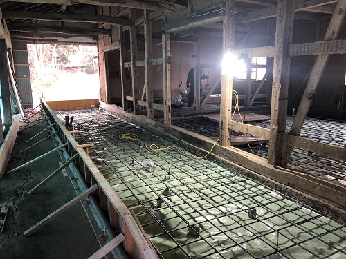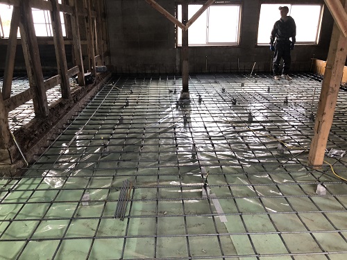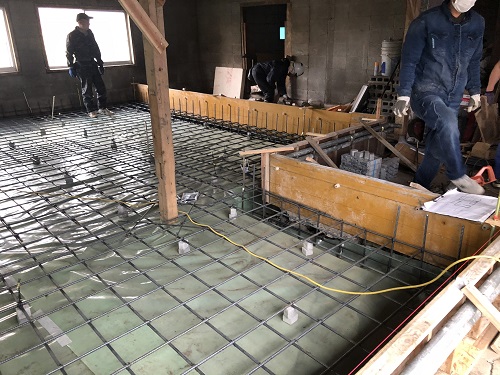 基礎配筋の進捗です。基礎枠も出来てきました。