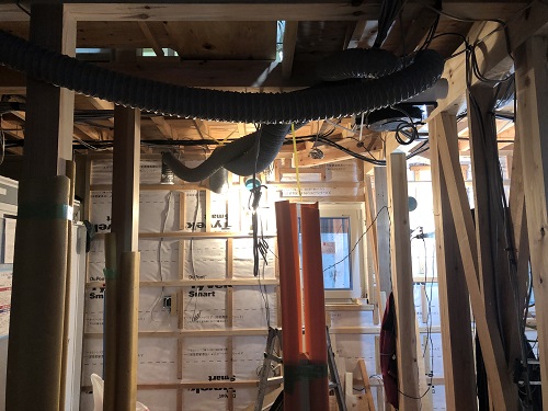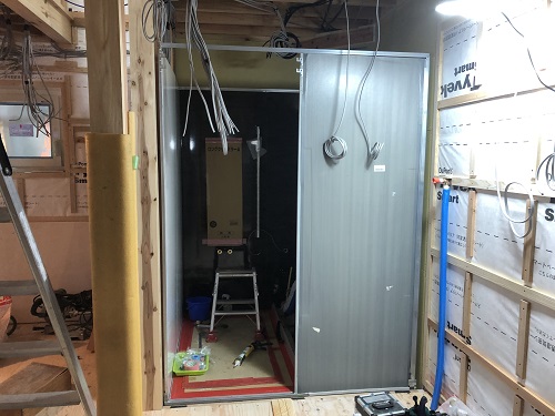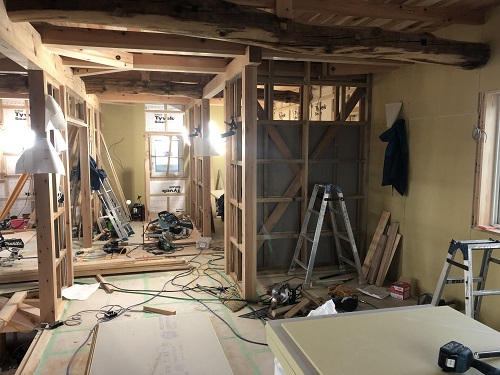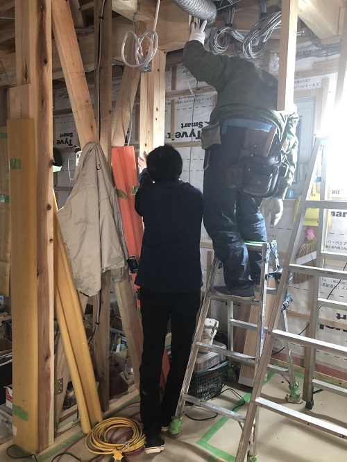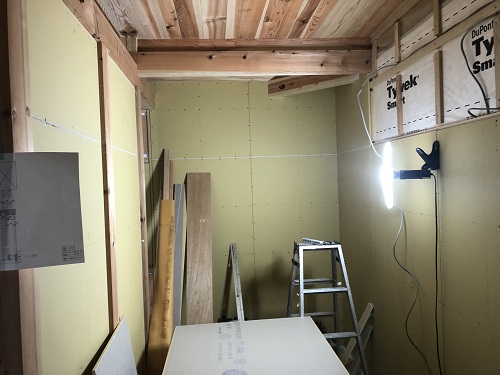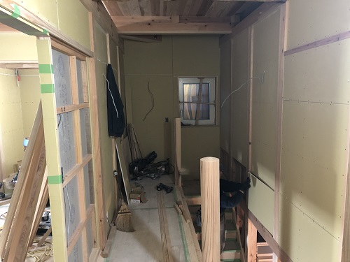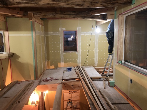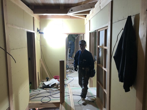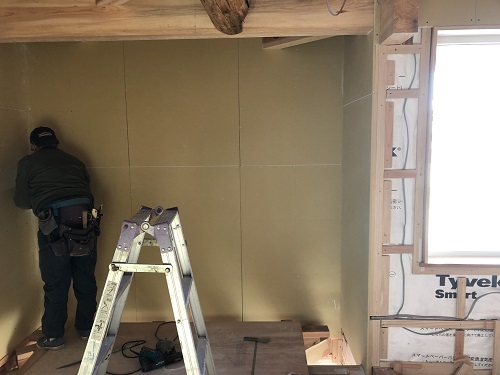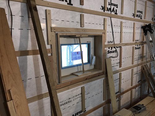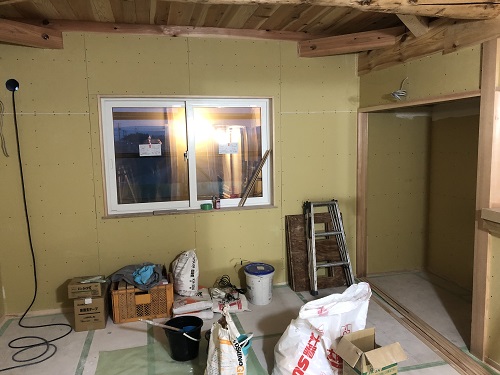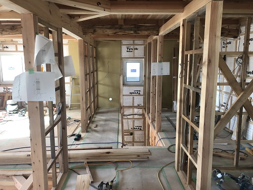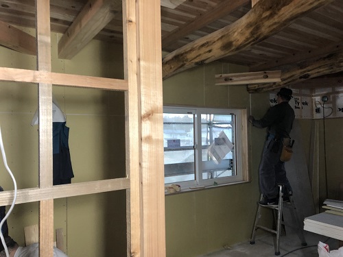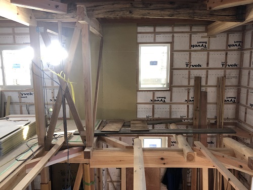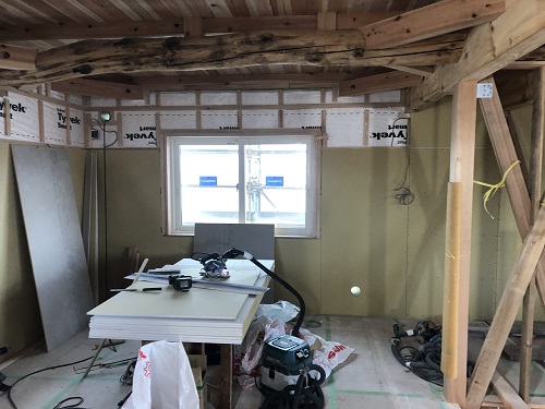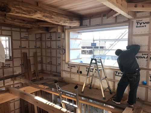 1階床工事が進み、2階は窓枠の取り付けとPB張込みも進んできました。
