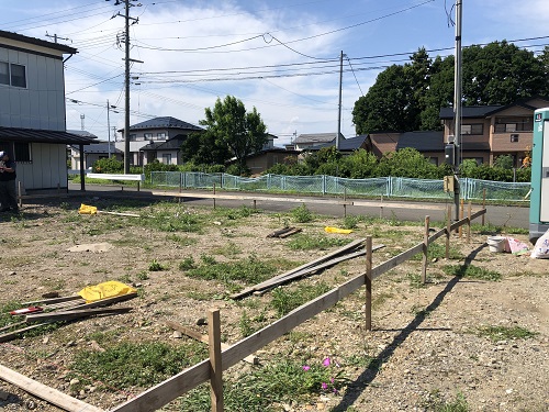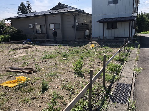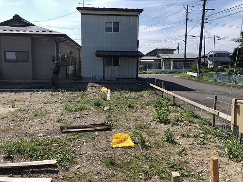 基礎工事遣り方が取り付けられました。仮設水道は井戸水ですが、勿論工事の為に掘った井戸ではなく、融雪目的です。