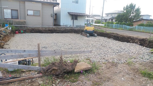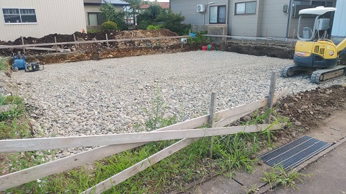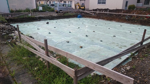 砕石地業の後は、防湿シートを敷き込んでステコンまで進みました。