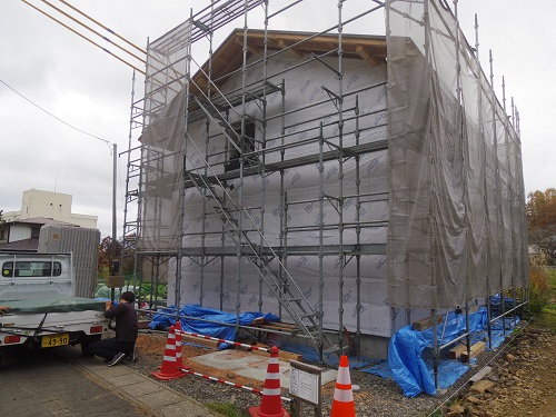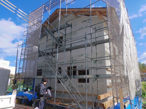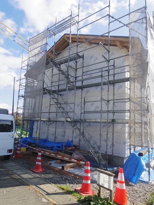 引き続き外断熱工事が進んでいます。