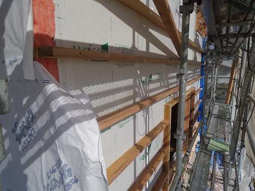 外断熱の下地も始まりました。付加断熱とも云います。