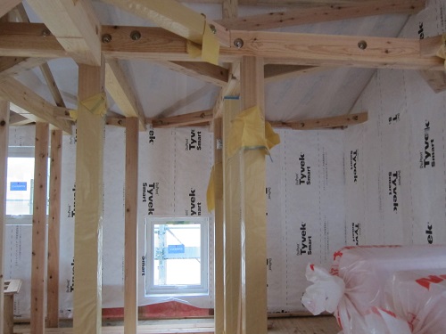 外断熱とタベックシート張込みが一面進みました。