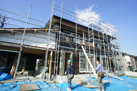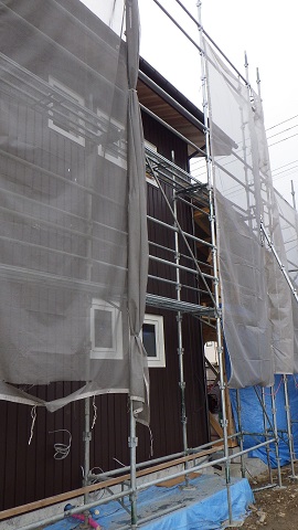 二枚橋の新築工事、外壁の張込みがやっと進みました。