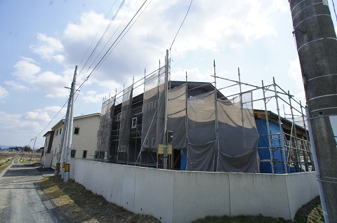 外壁工事が完了した二枚橋の新築工事です。引き続き内部の仕上げを進めて欲しいと思います。