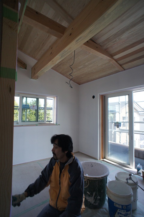 塗り壁が進められるところまで進んで、大工仕事が完了するのを待っているのでした。