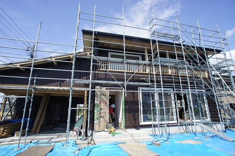 二枚橋の新築現場は完成に向かい大詰めの押せ押せムードで頑張っております。バルコニー手すりも取り付いて外観の雰囲気も良くなりました。