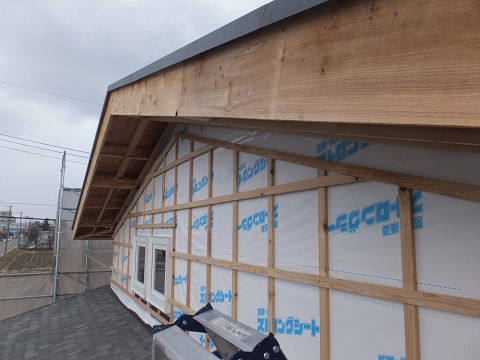 二枚橋の新築工事は外部胴縁と云う外壁の下地と外壁通気層が完了しました。後は外壁の張り込み待ちです。