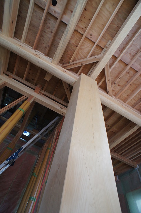 二枚橋の新築現場の大黒柱は大きな銀杏の木です。