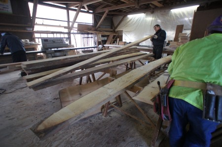 さらに好摩では二枚橋新築の赤松の板で造る階段材も刻み加工しています。