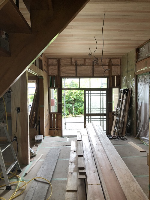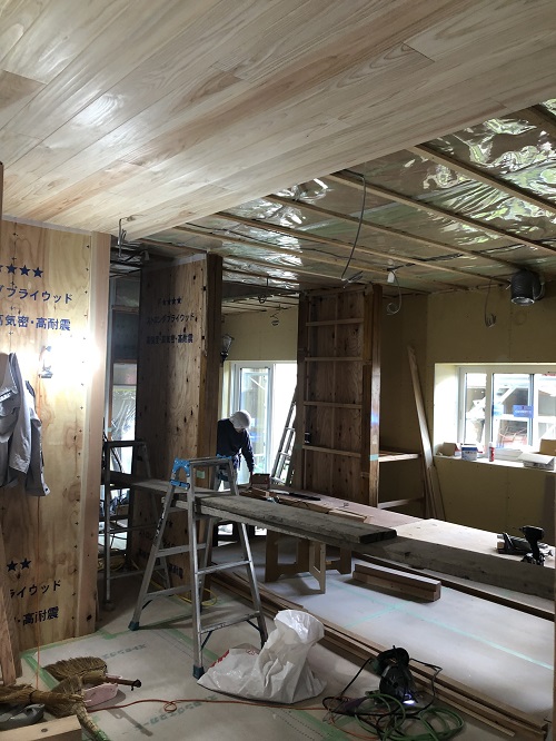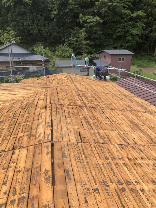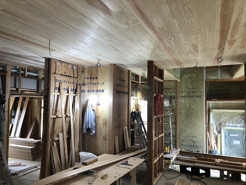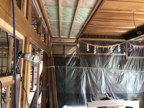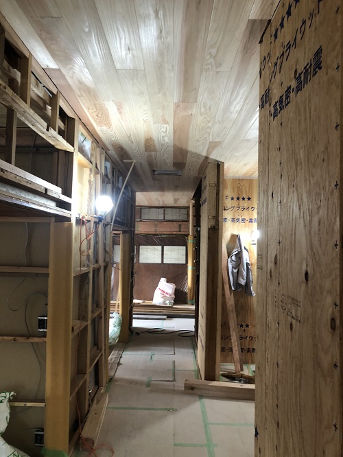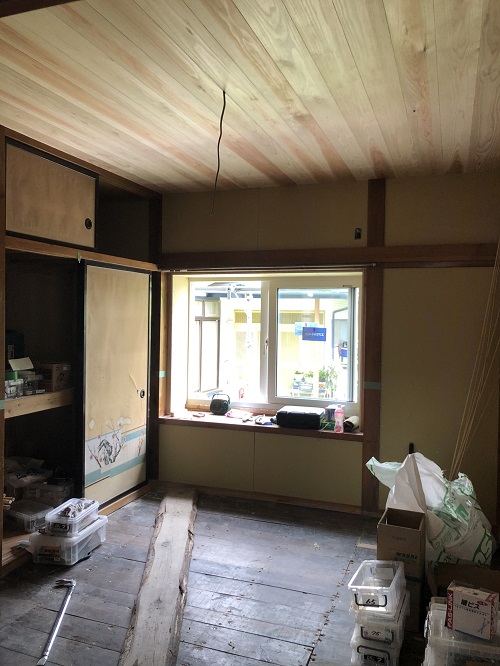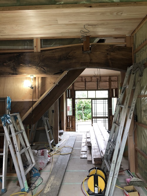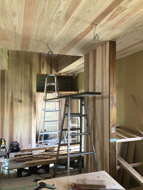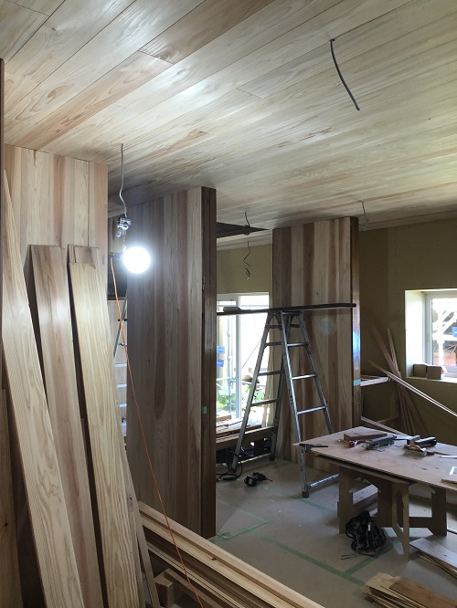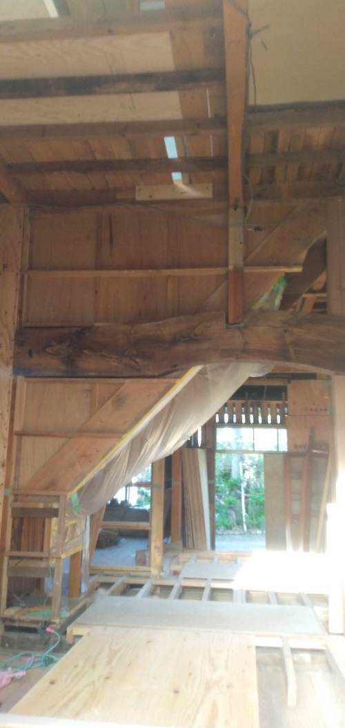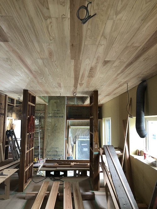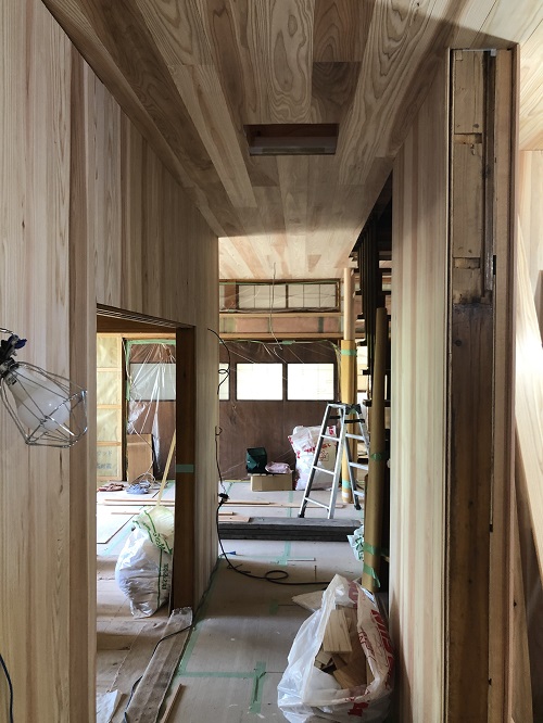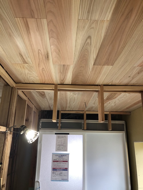 屋根の葺き替えが進み、内部は杉天井板を張り込んでいます。
