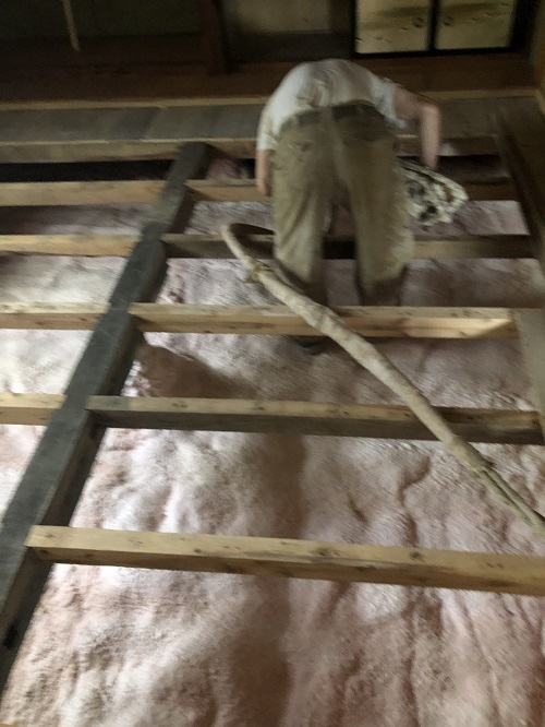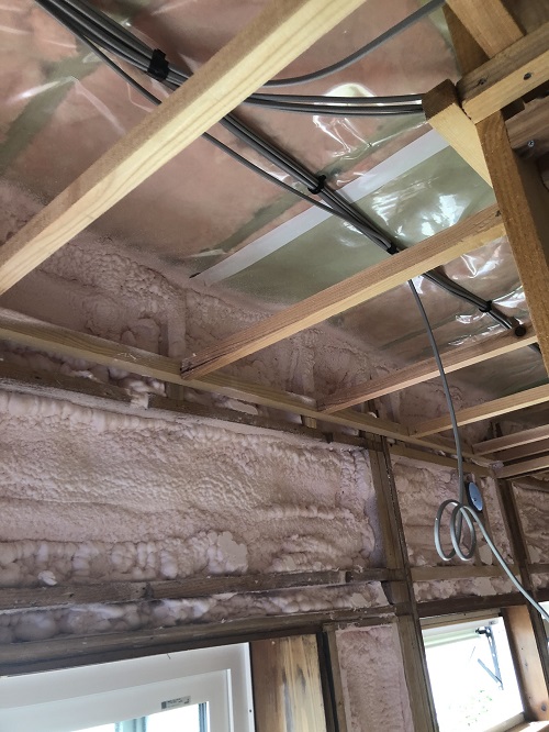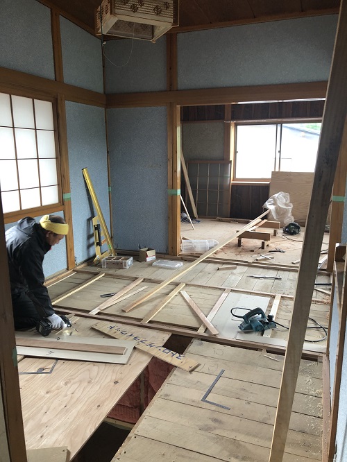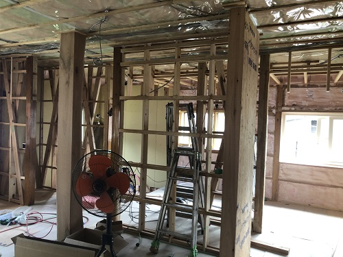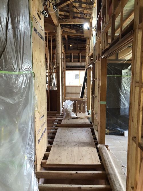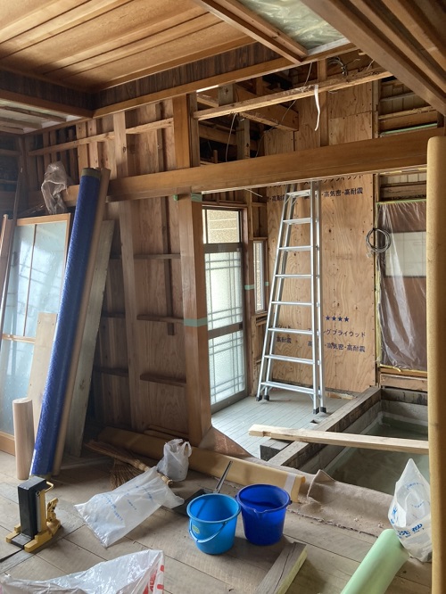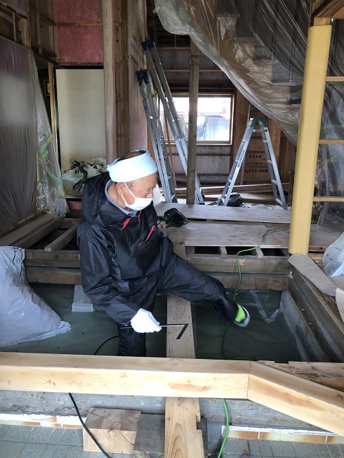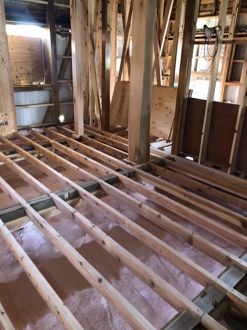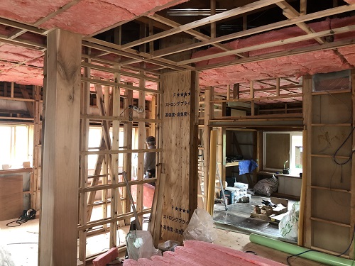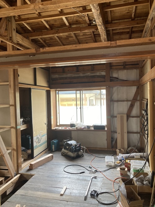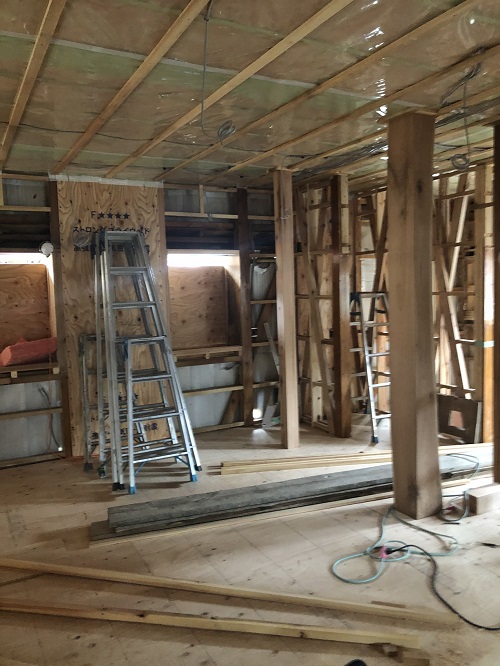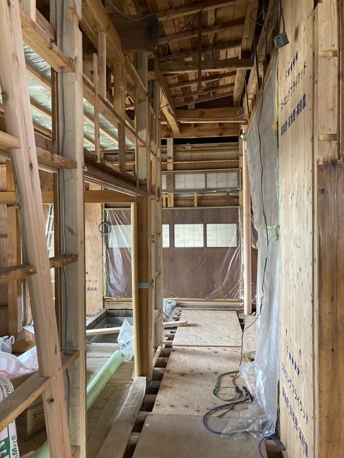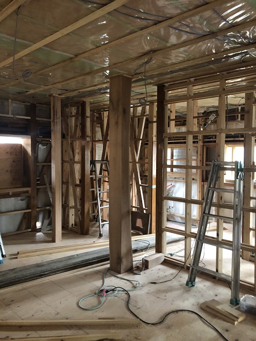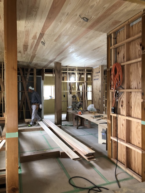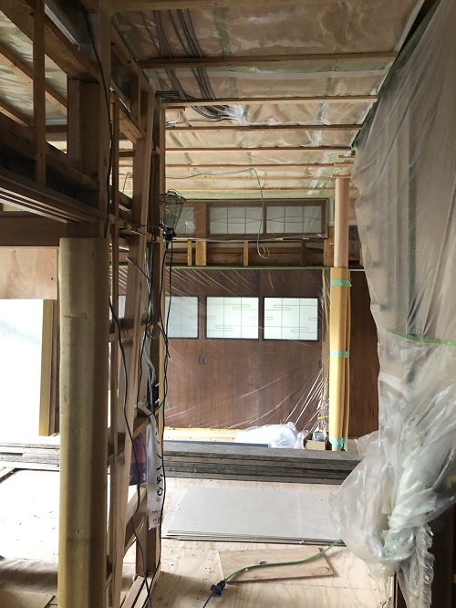屋根の葺き替えが進み、内部は杉天井板を張り込んでいます。