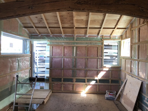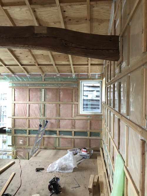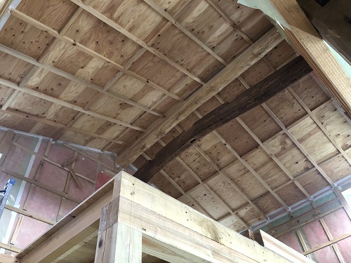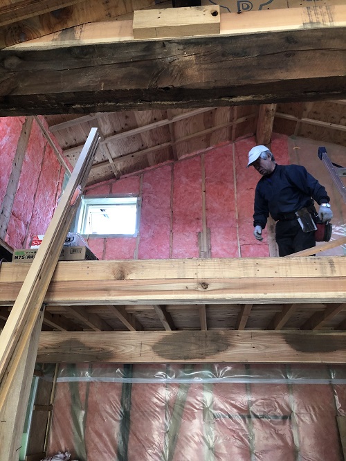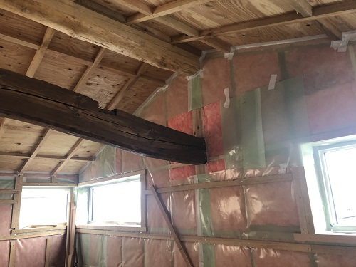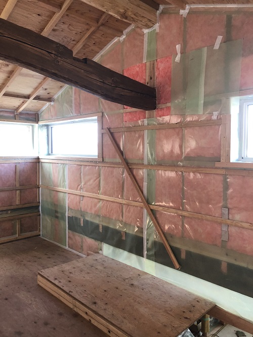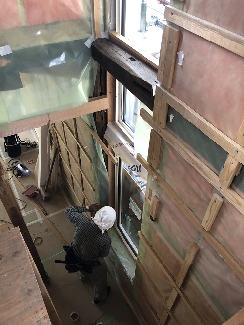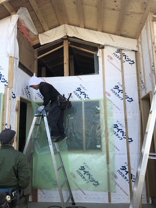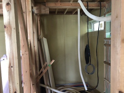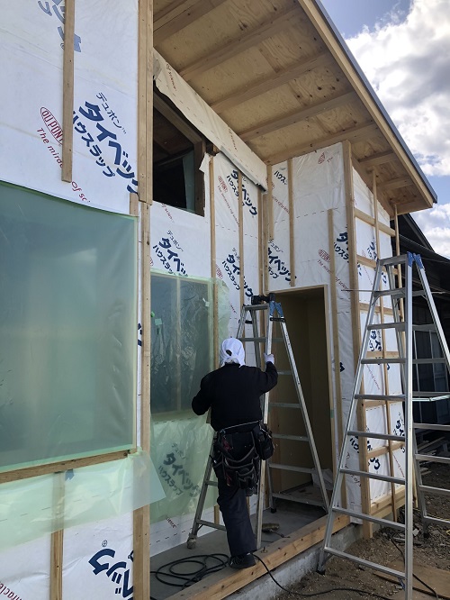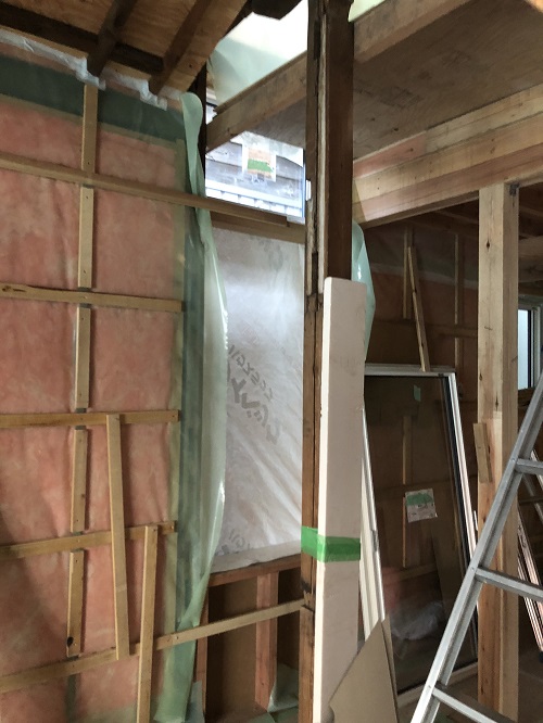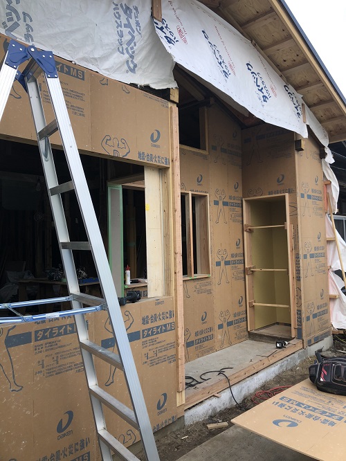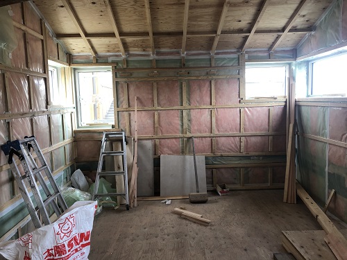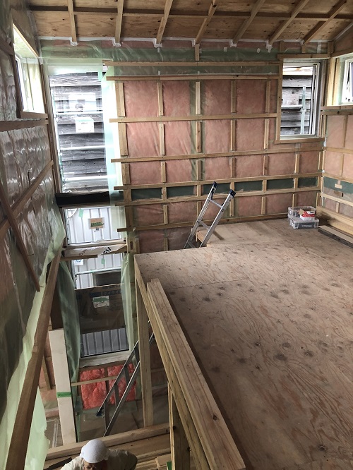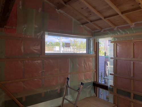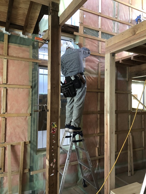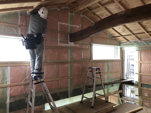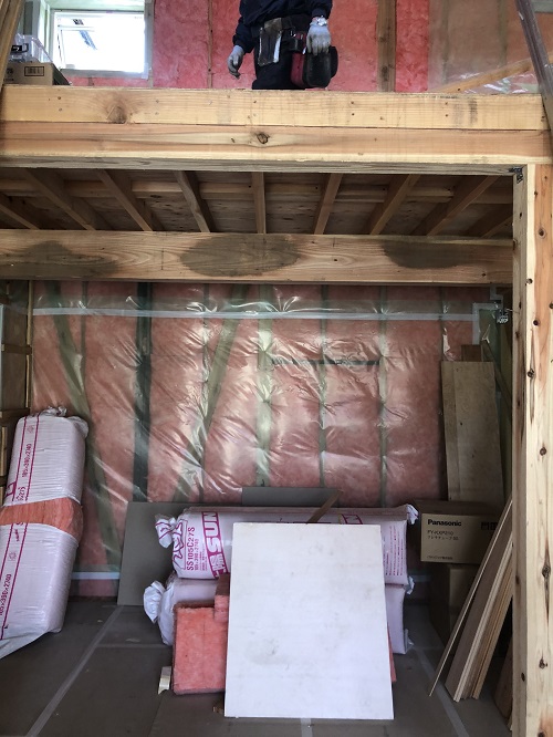 断熱防湿工事が進み壁ボード下地の取り付けが進みました。