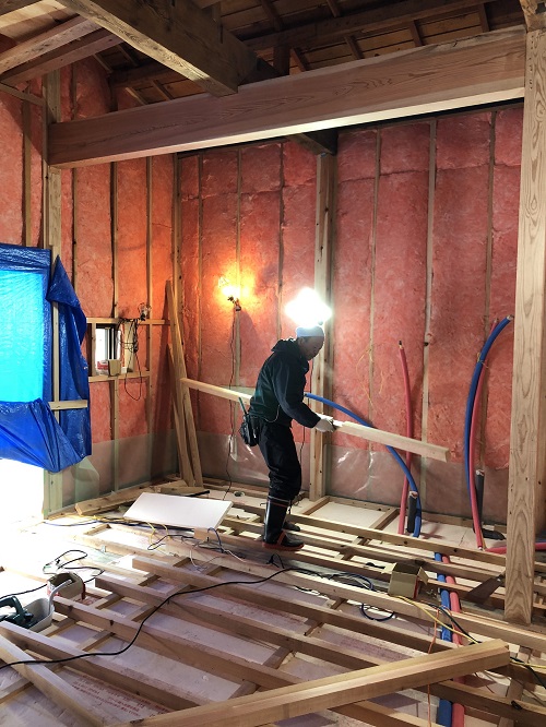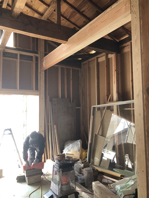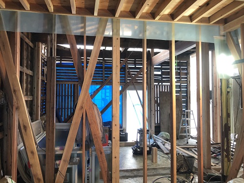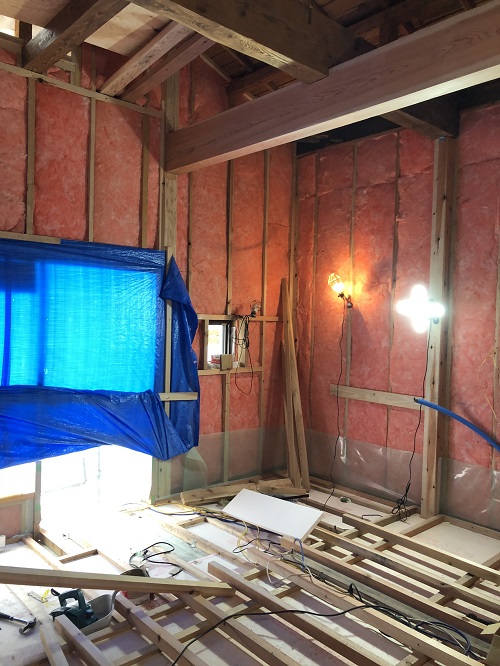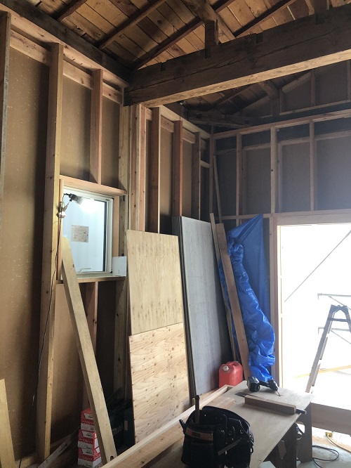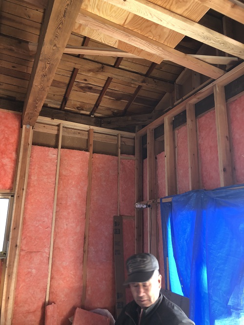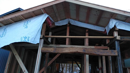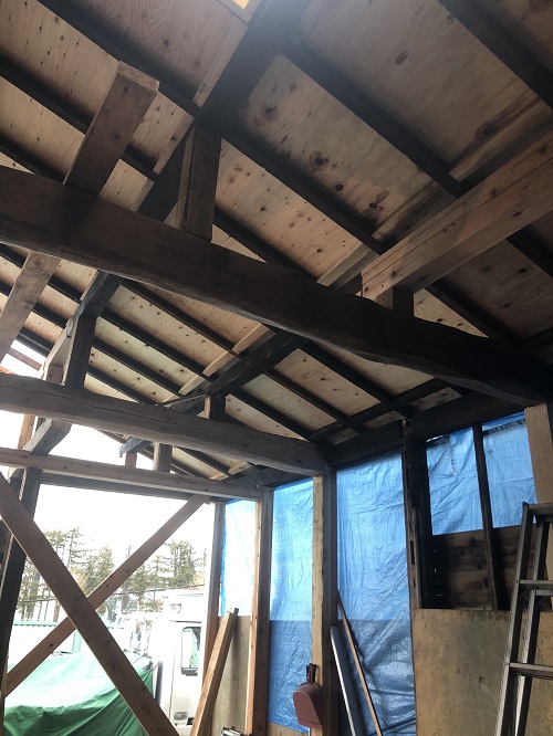 大改修工事は屋根葺き工事と壁断熱工事が進みました。
