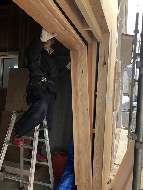 下地工事と窓枠造作も同時に進んでいます。