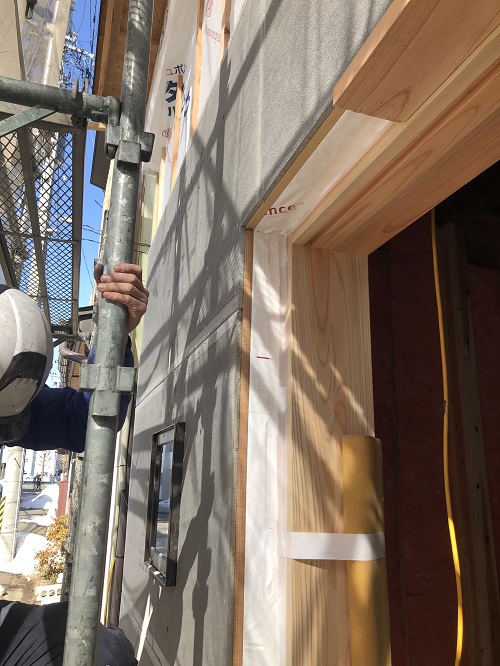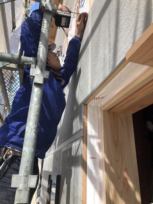 外部左官壁の下地建材の取り付けや壁断熱が進みました。
