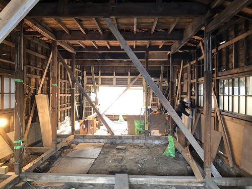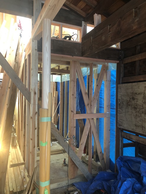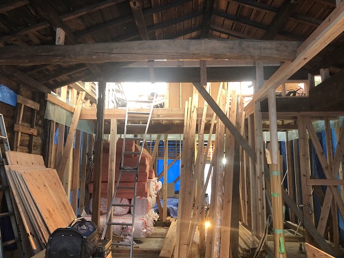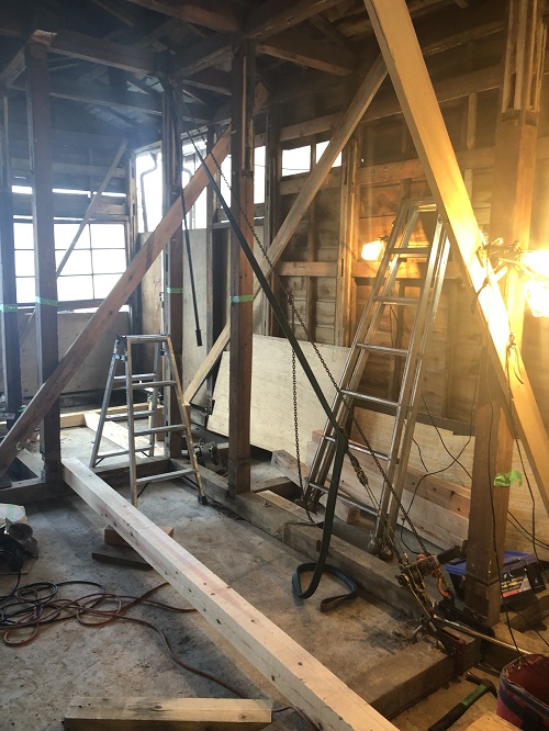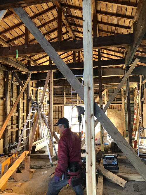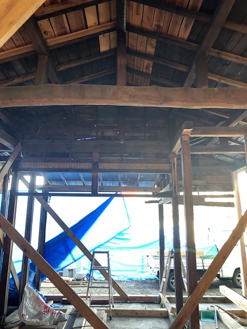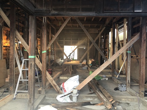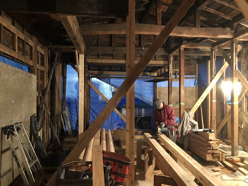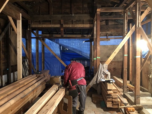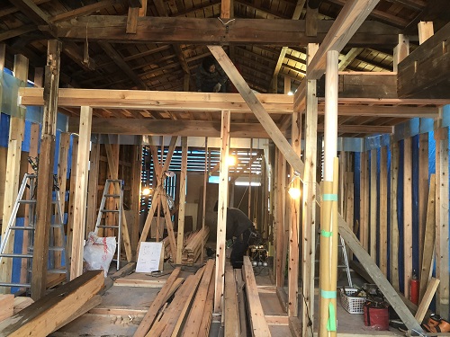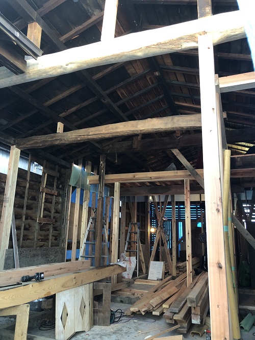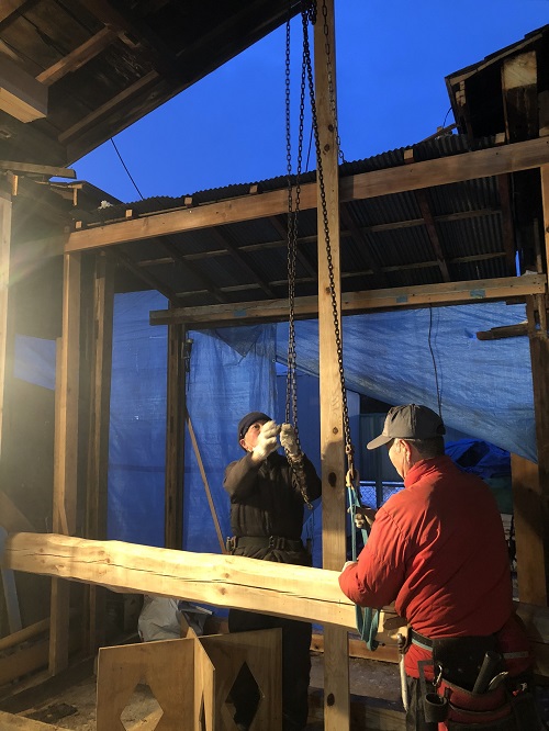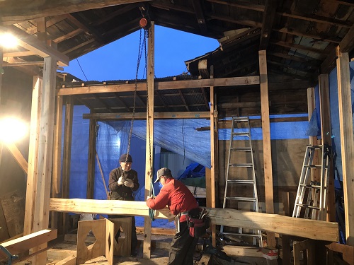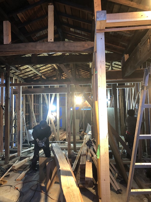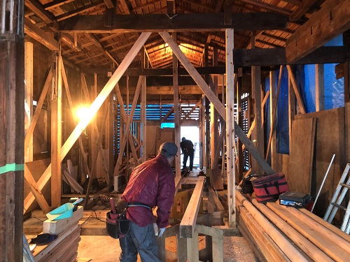 大改修現場では、構造補強がまだまだ続いています。この様に直して使えるのが木組みの構造の良さだと思います。