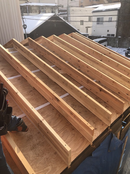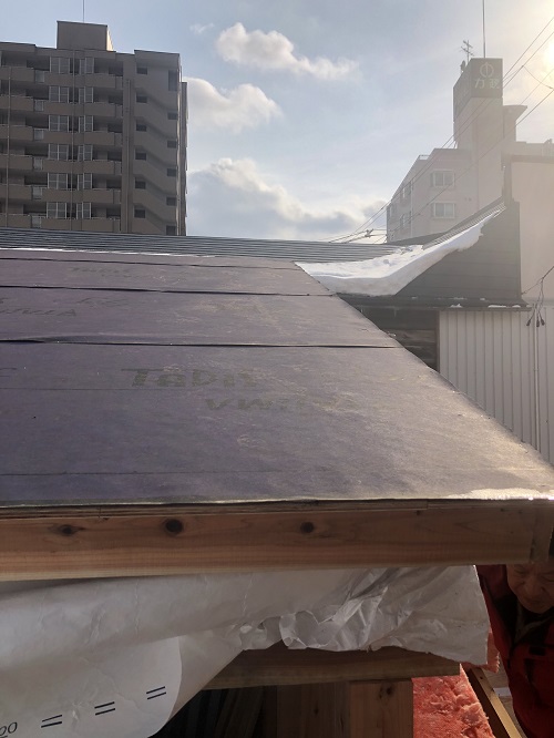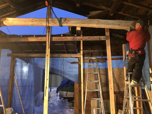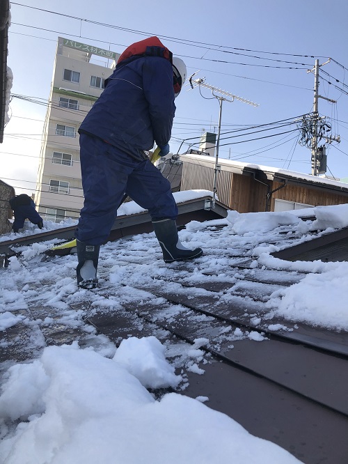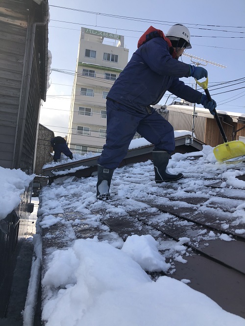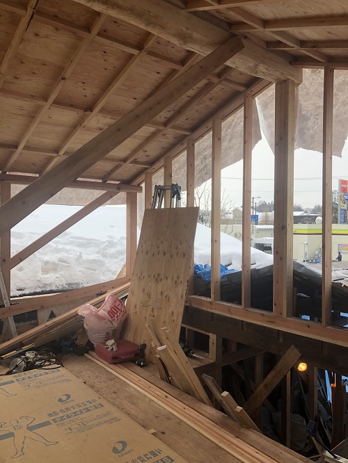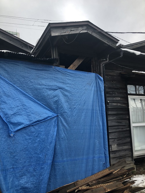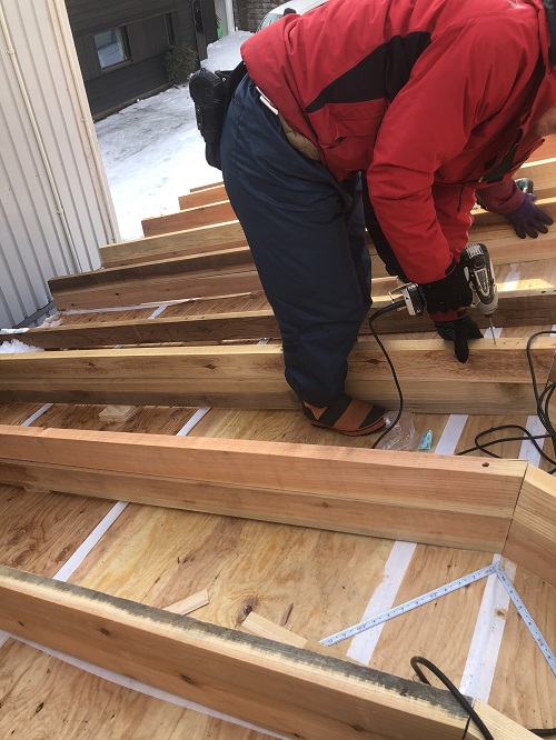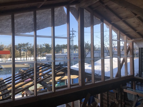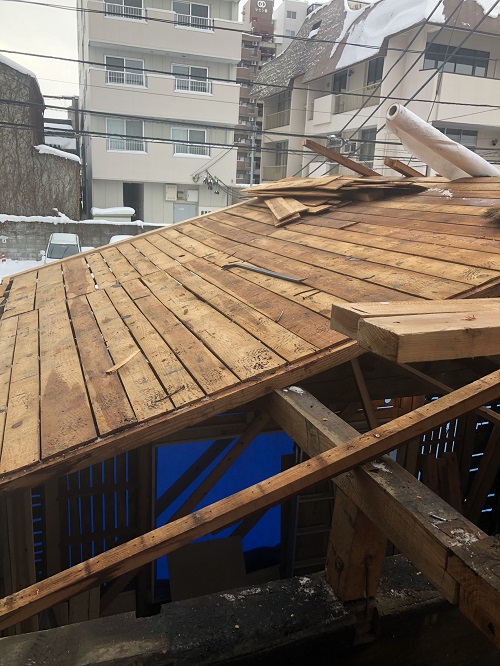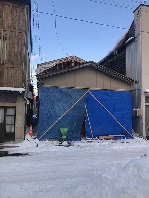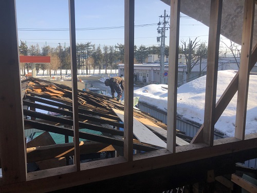 基礎メンバーが応援に駆け付け、屋根の雪降ろしをして屋根工事に取り掛かる予定です。