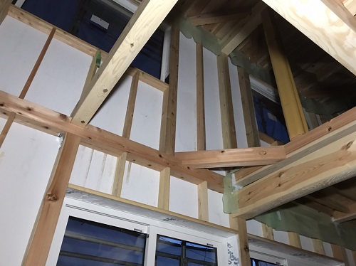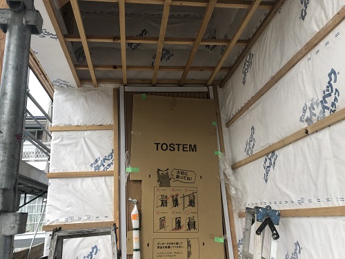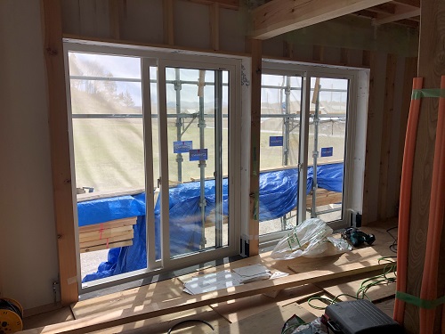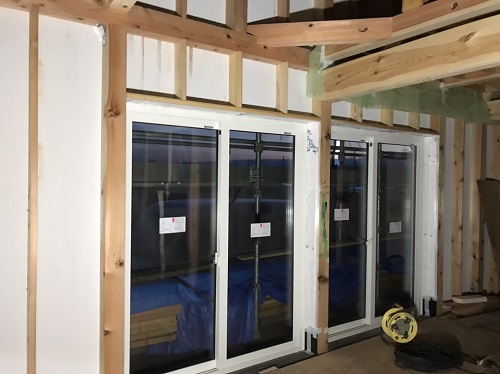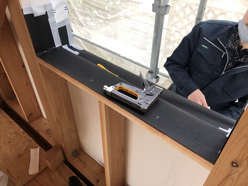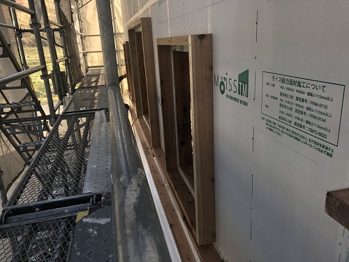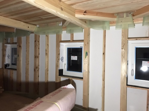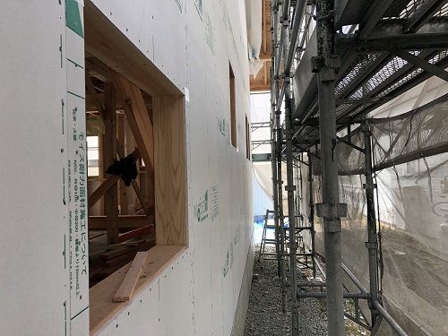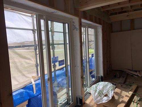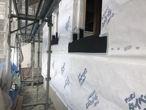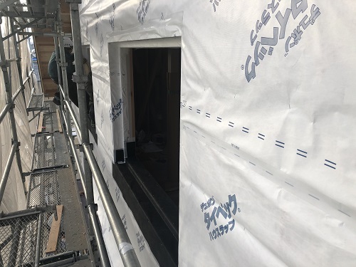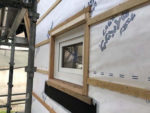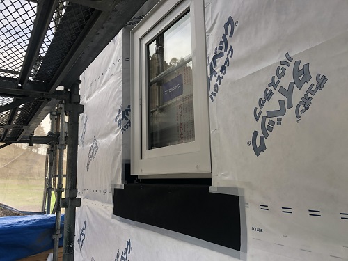 サッシの取り付けと外部の外壁下地の取り付けも完了しました。