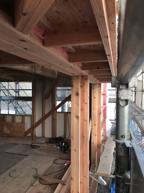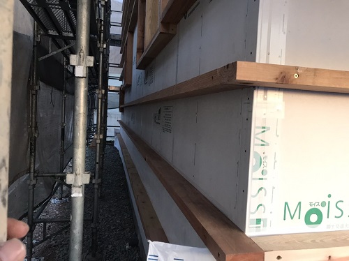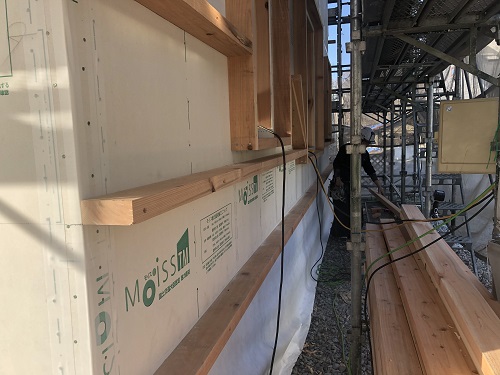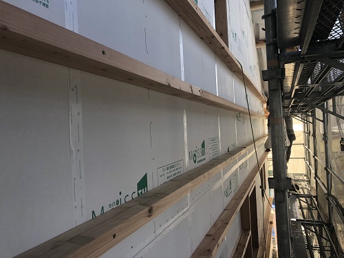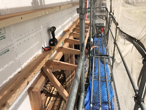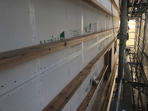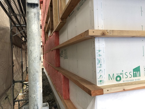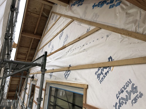外断熱の受け下地の取り付けが進んでいます。