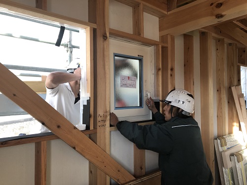サッシの取り付けが進んでいます。