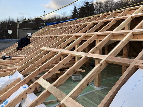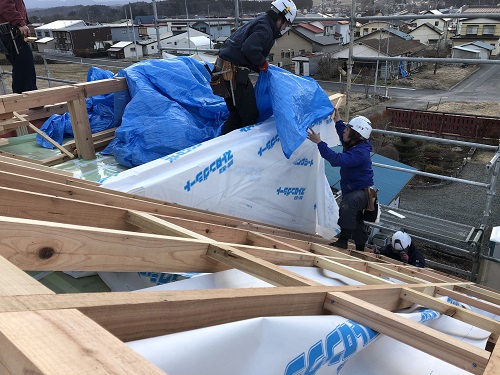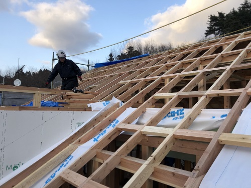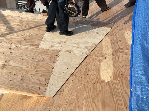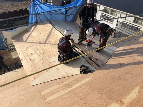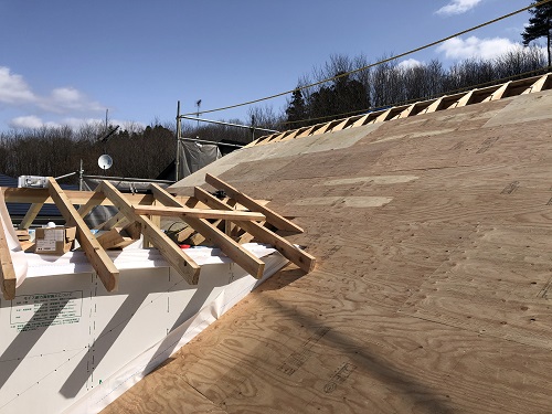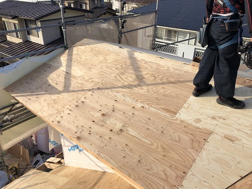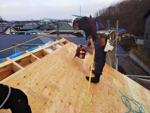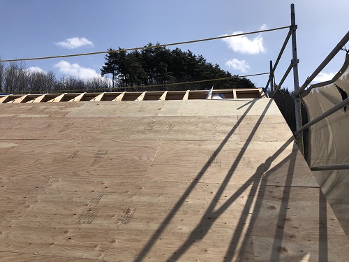 屋根下地合板の張込み完了です。
