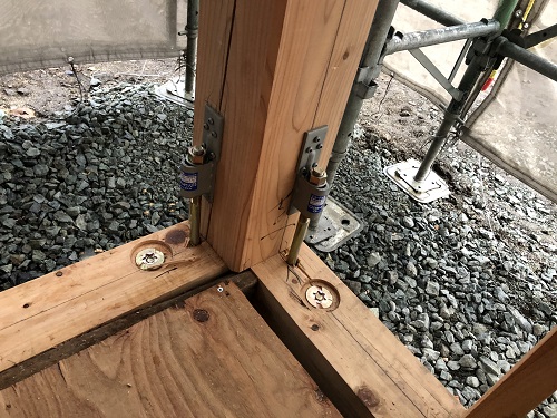 雨が降ると金物の取り付けを行います。